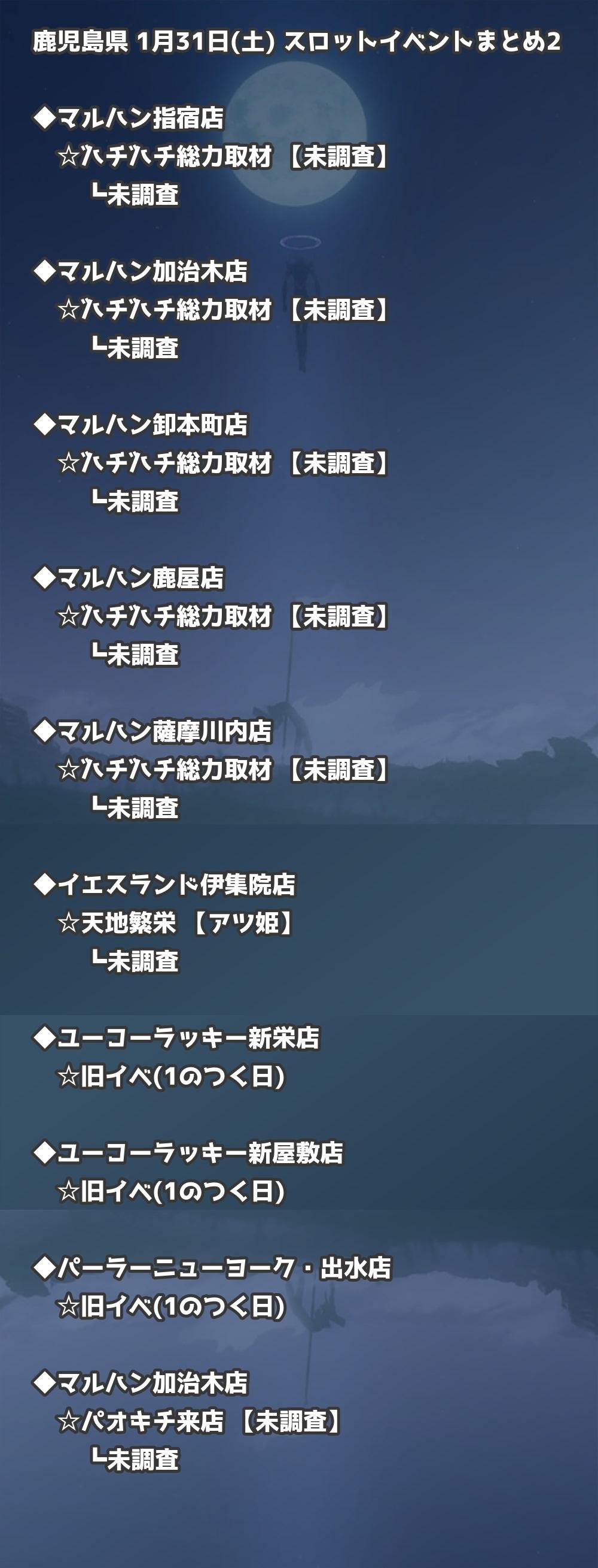 【鹿児島県】1月31日(土) パチンコホールイベント取材まとめ記事です。