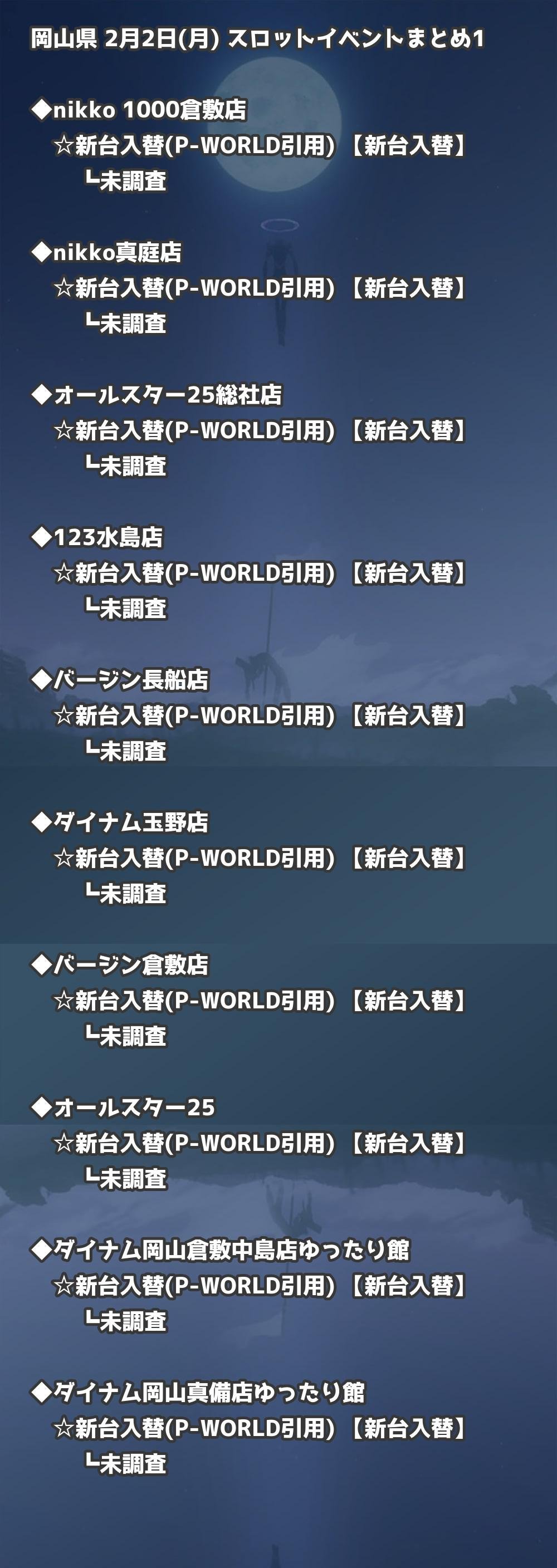 【岡山県】2月2日(月) パチンコホールイベント取材まとめ記事です。