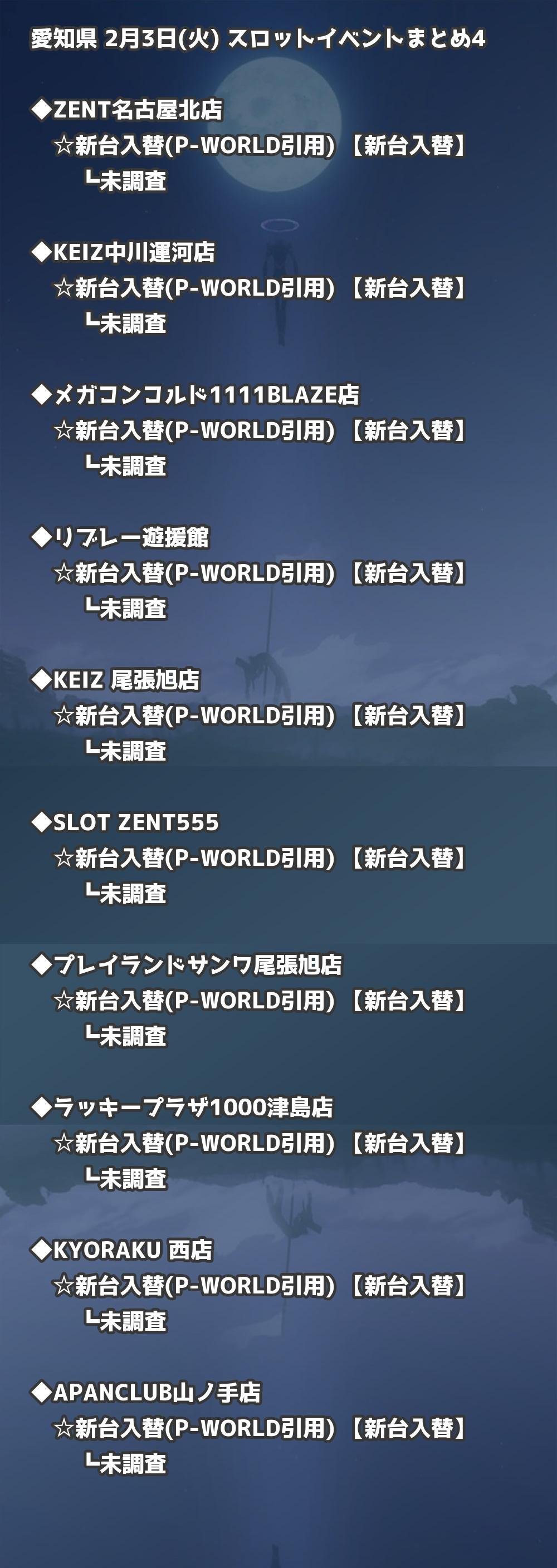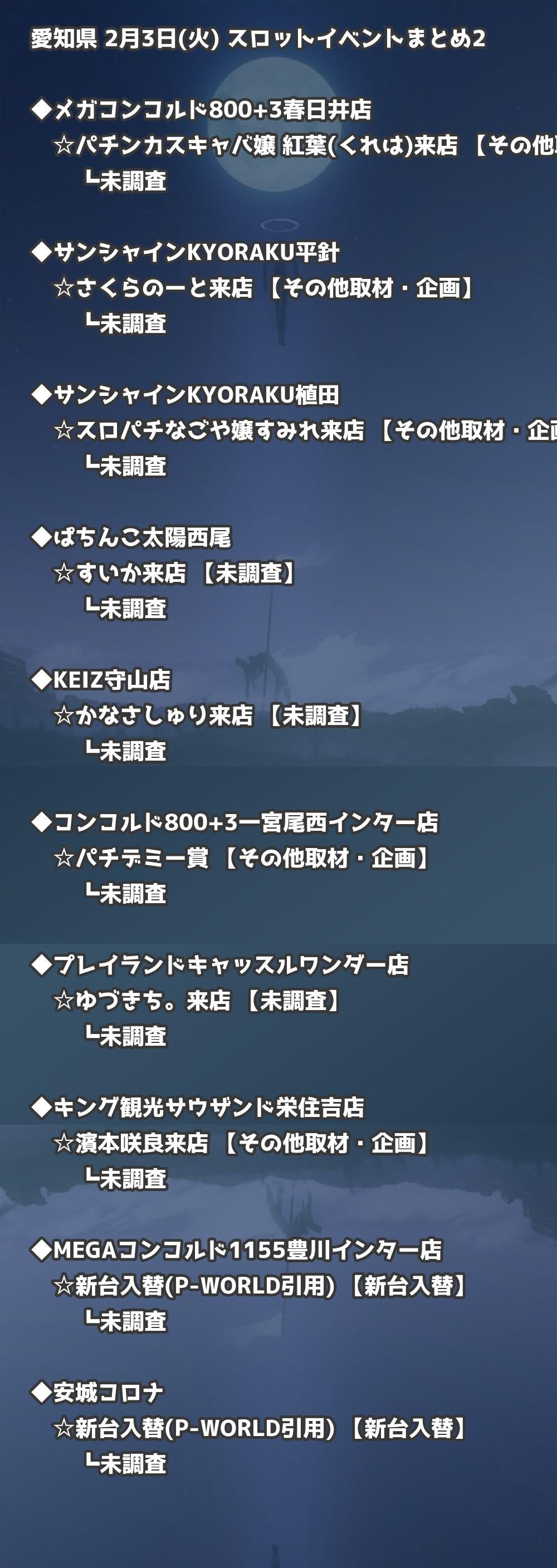 2月3日(火) 愛知県のTOP20の結果を掲載しています。タップで上位機種など詳細が見れます。