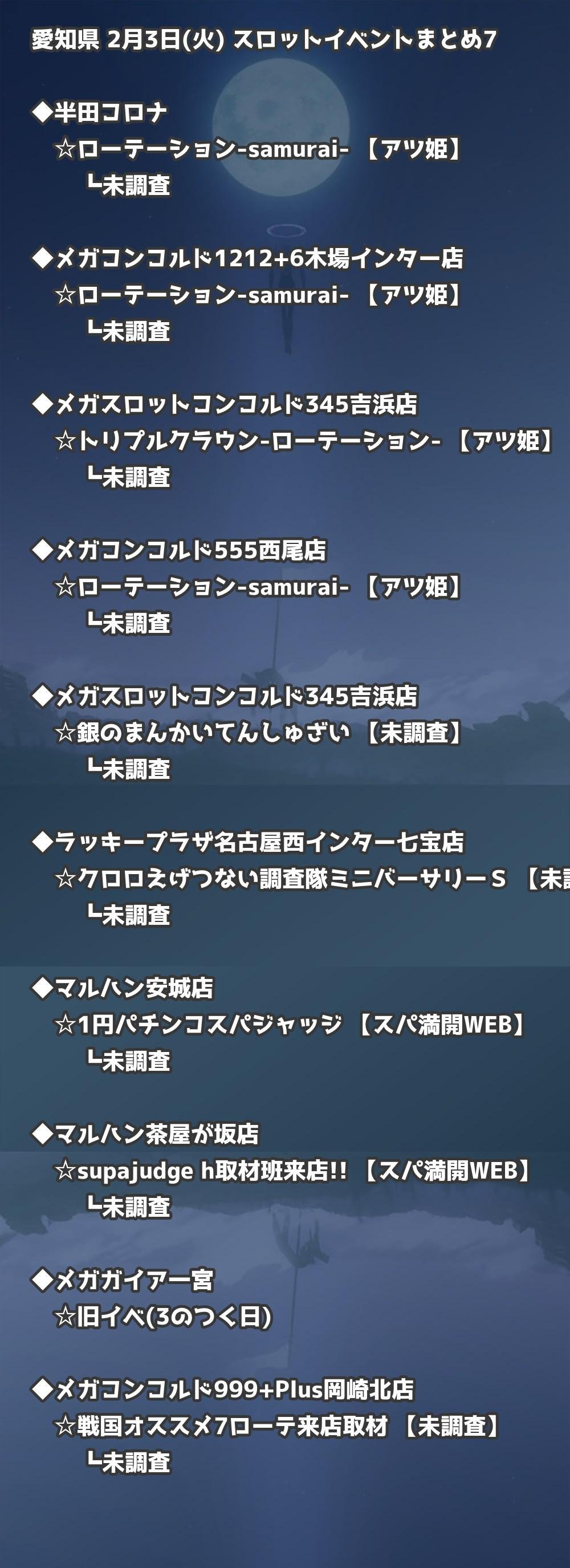 | メガコンコルド999+Plus岡崎北店 | 戦国オススメ7ローテ来店取材 | 未調査 |