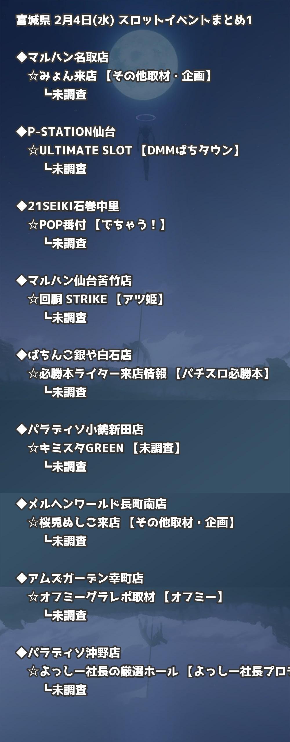 【宮城県】2月4日(水) パチンコホールイベント取材まとめ記事です。