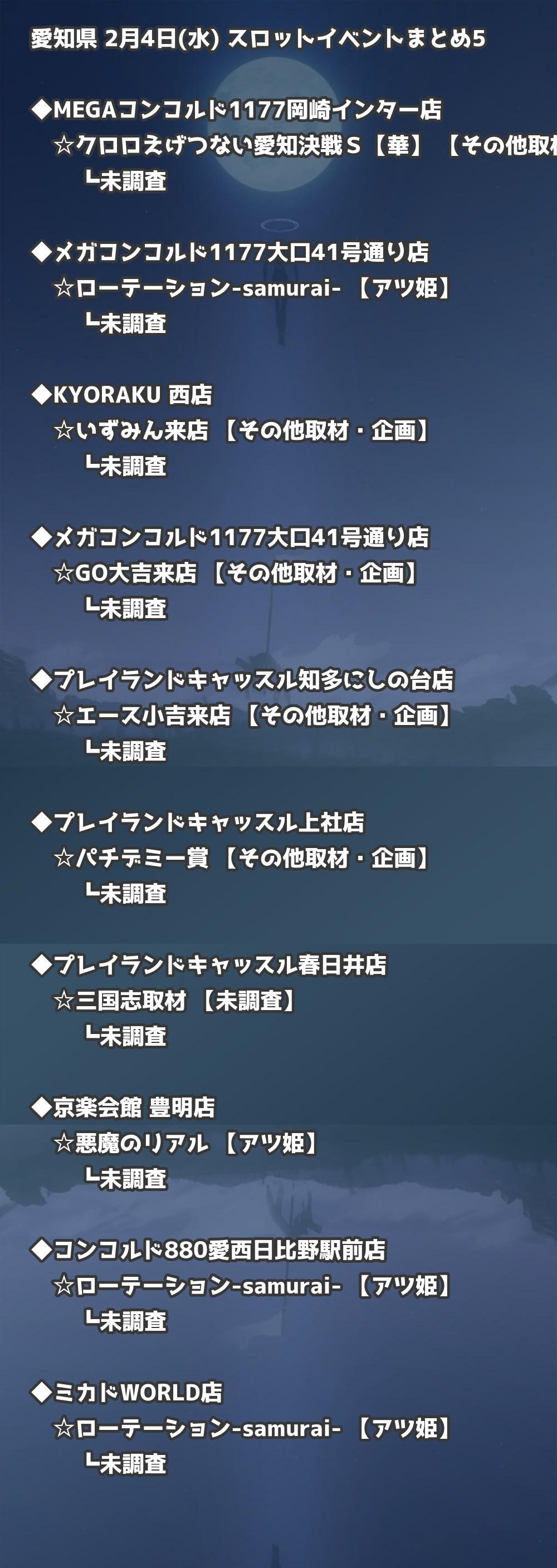2月4日(水) 愛知県のTOP20の結果を掲載しています。タップで上位機種など詳細が見れます。