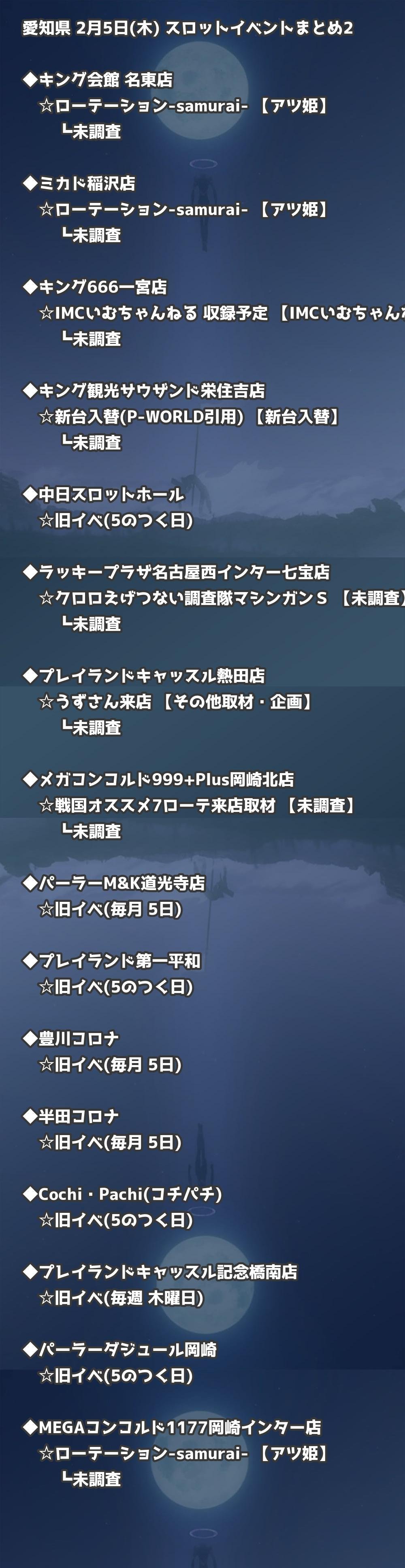 【愛知県】2月5日(木) パチンコホールイベント取材まとめ記事です。