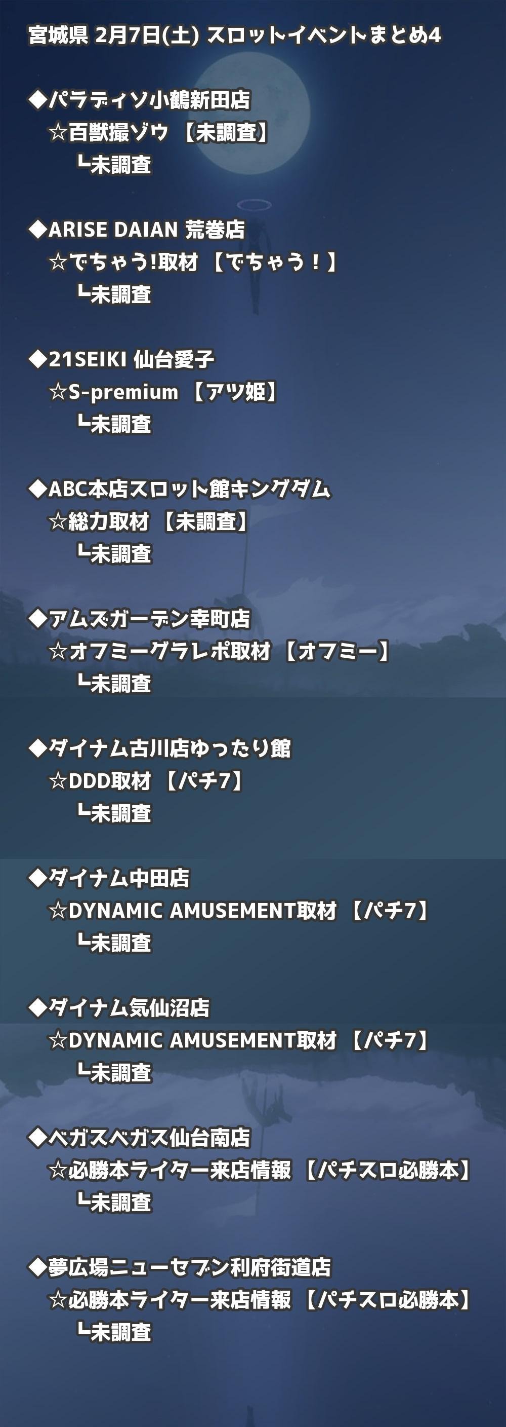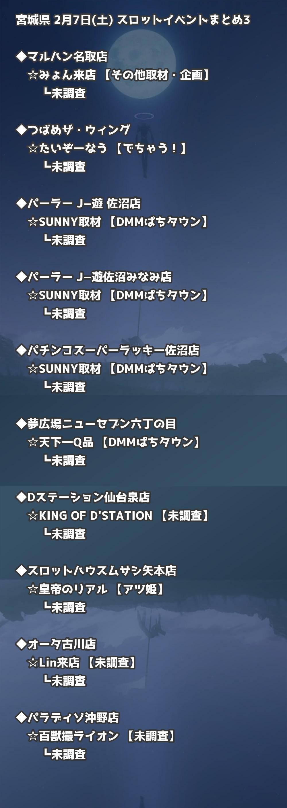 【宮城県】2月7日(土) パチンコホールイベント取材まとめ記事です。