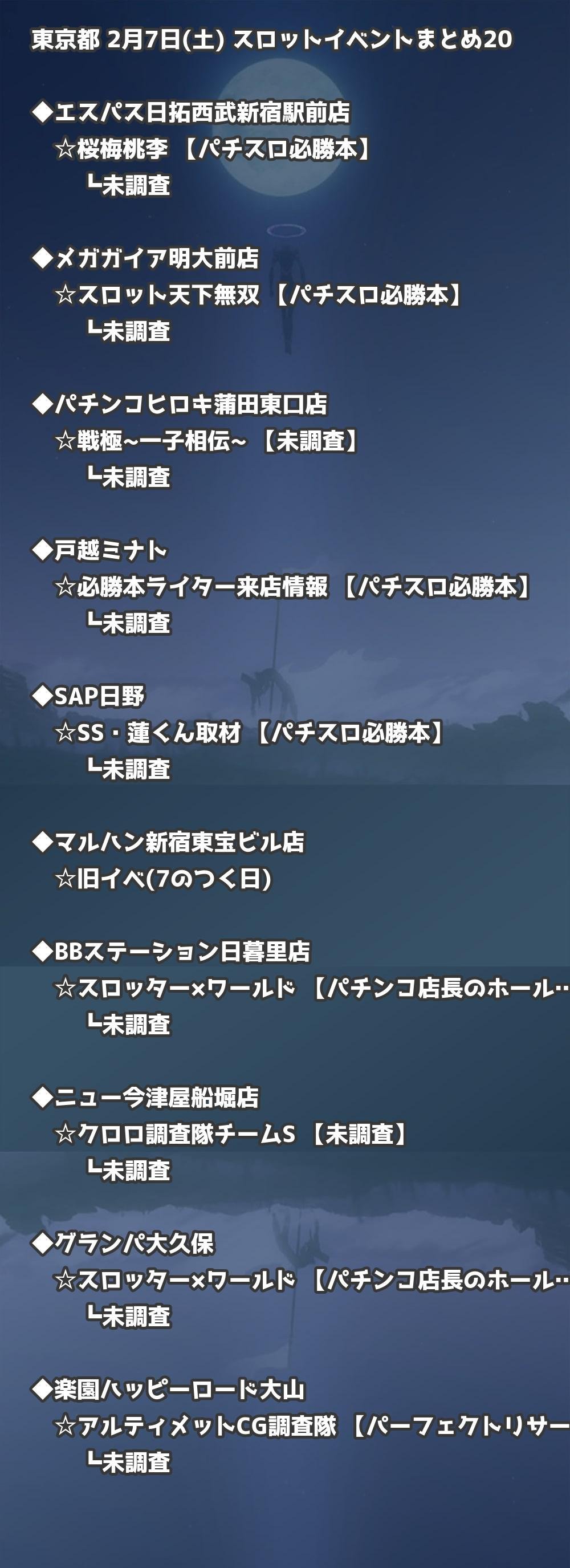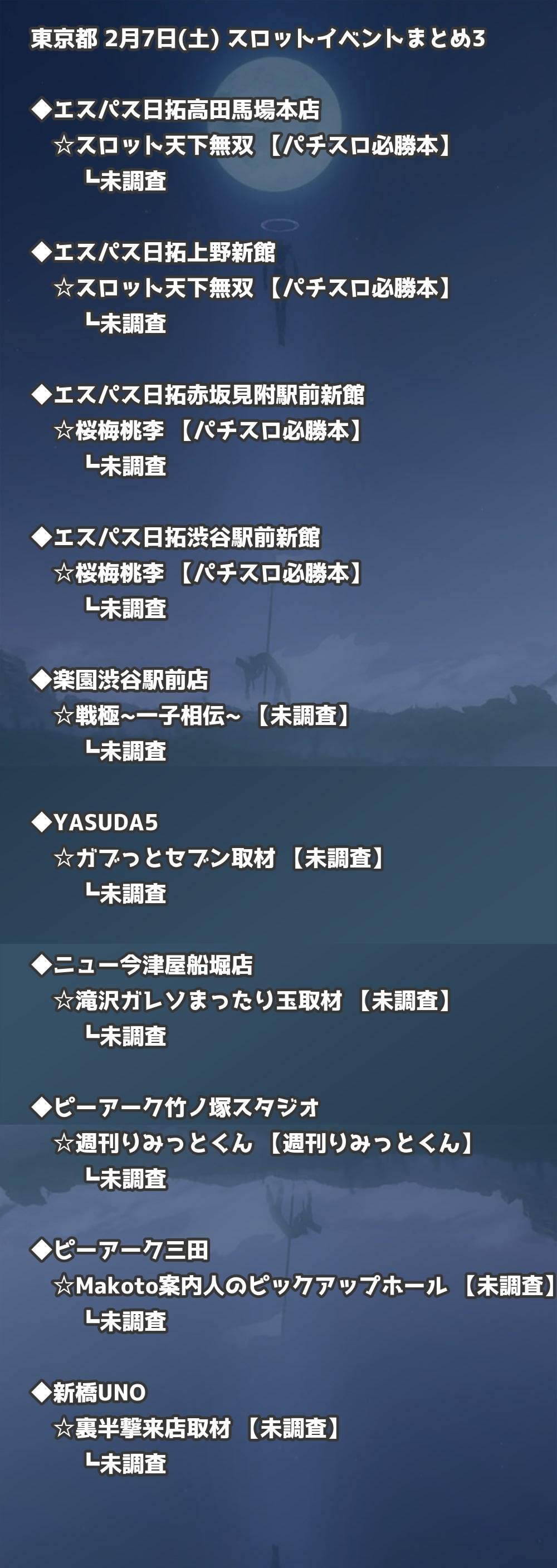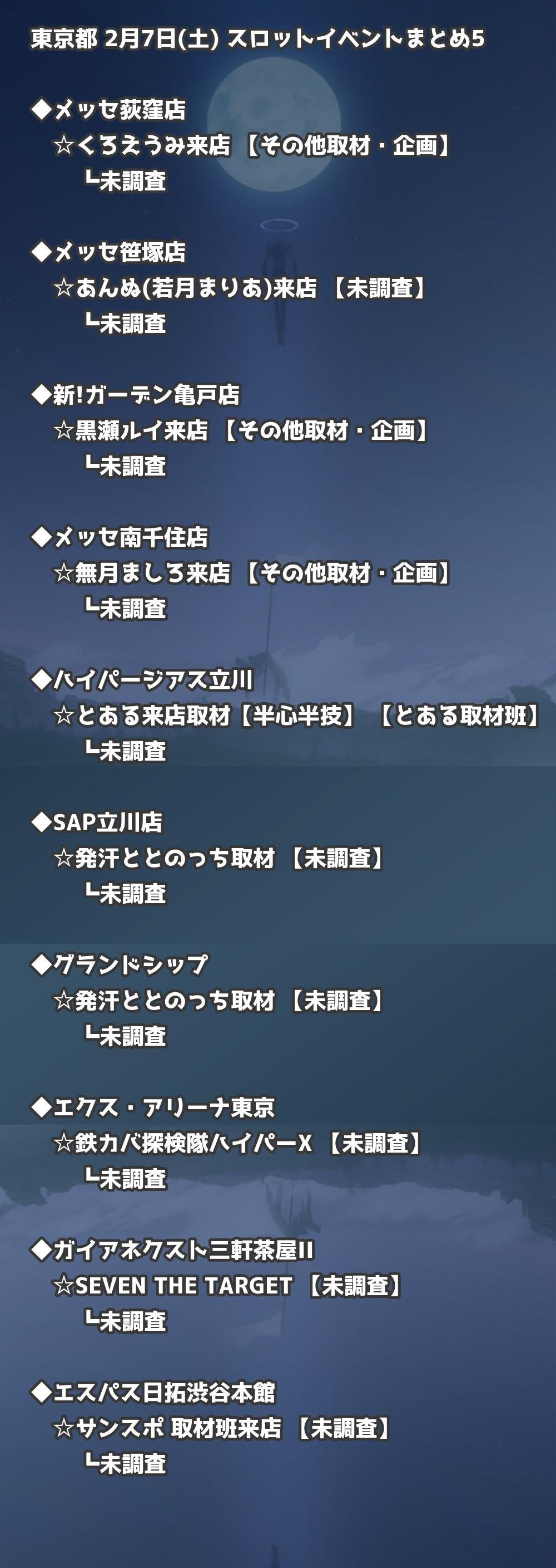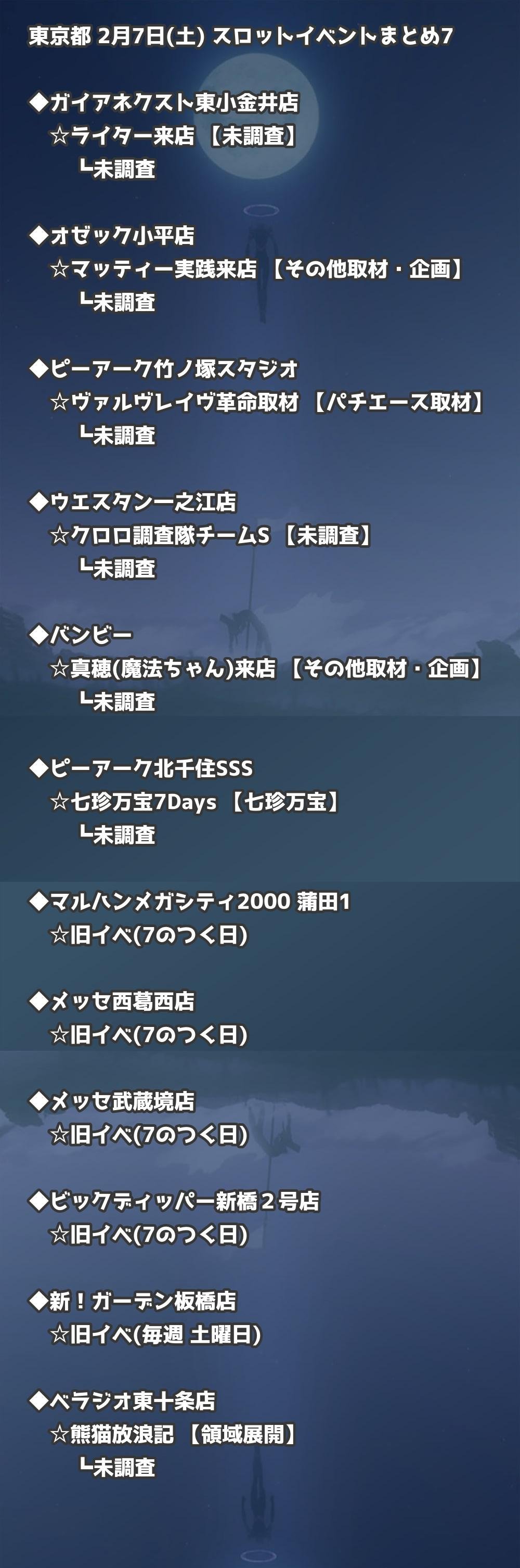 【東京都】2月7日(土) パチンコホールイベント取材まとめ記事です。
