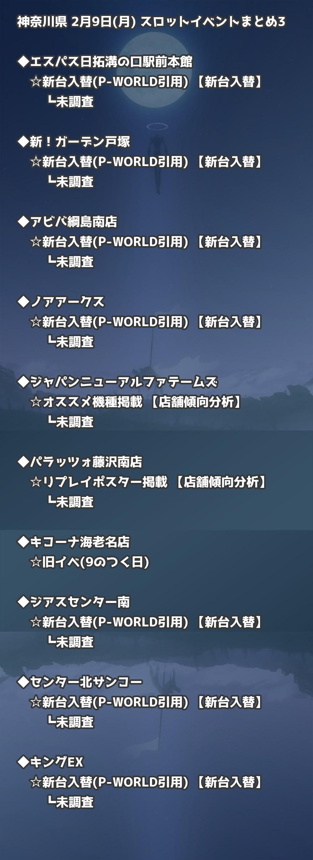 📊 神奈川県 2月9日(月) 勝てるパチンコ・スロット取材店舗一覧|おすすめ順