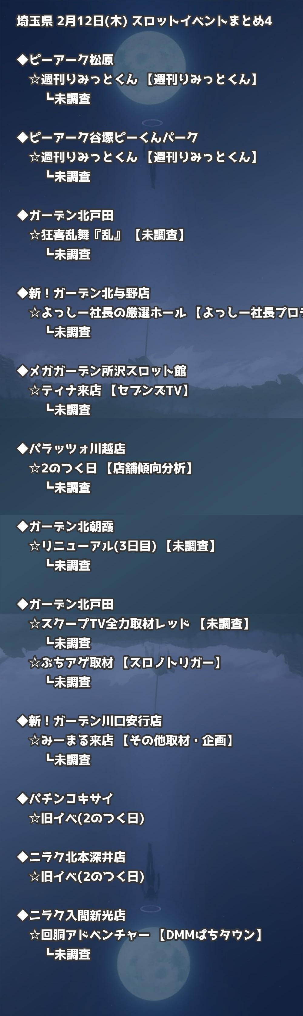 2月12日(木) 埼玉県のTOP20の結果を掲載しています。タップで上位機種など詳細が見れます。