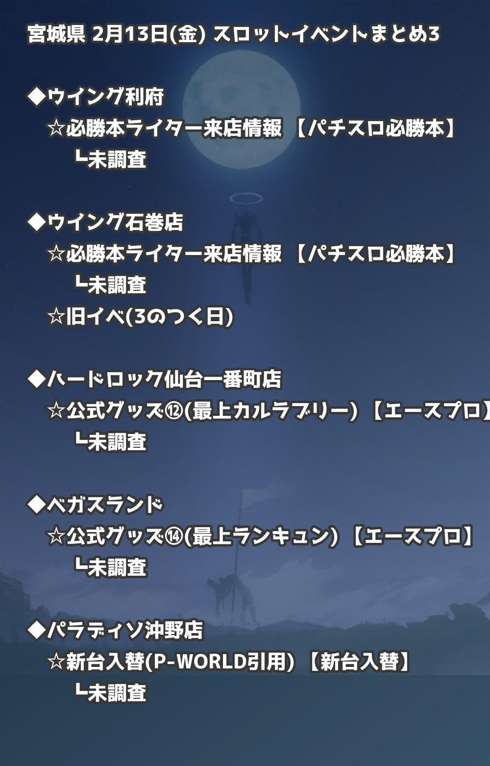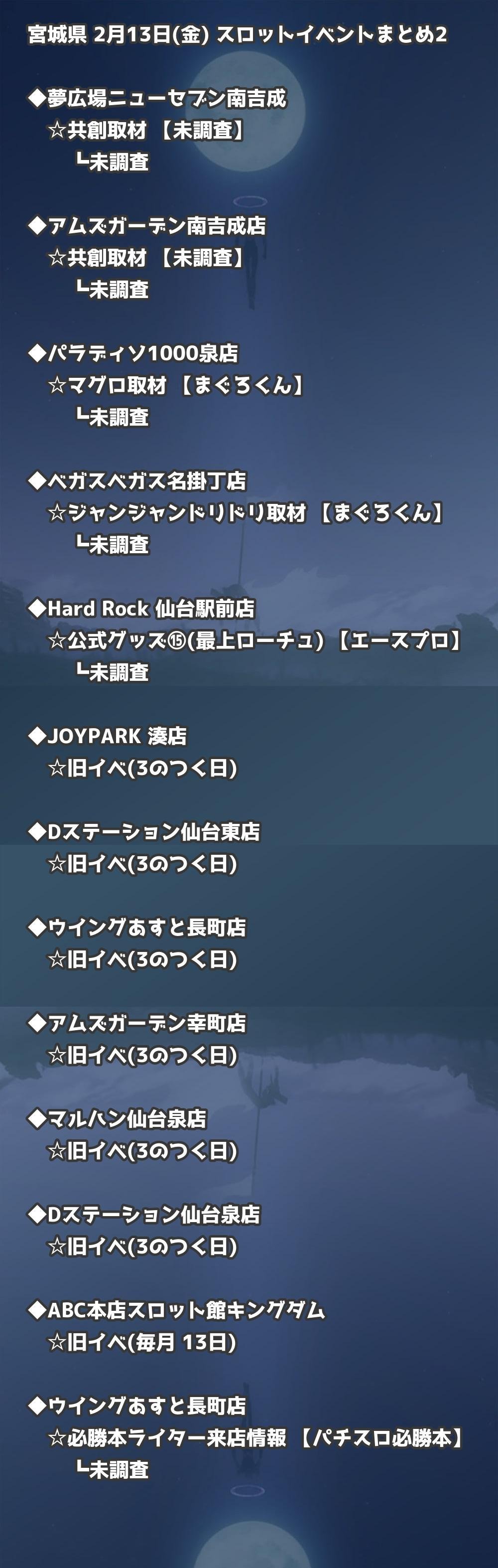 【宮城県】2月13日(金) パチンコホールイベント取材まとめ記事です。