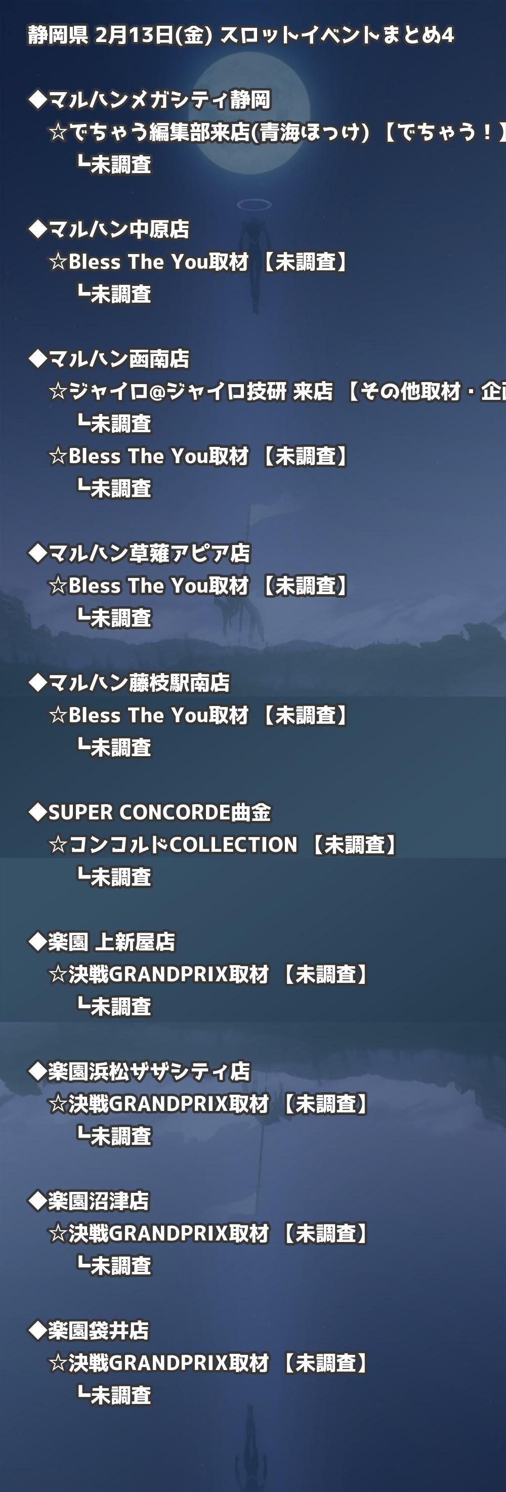 | マルハン藤枝駅南店 | Bless The You取材 | 未調査 |