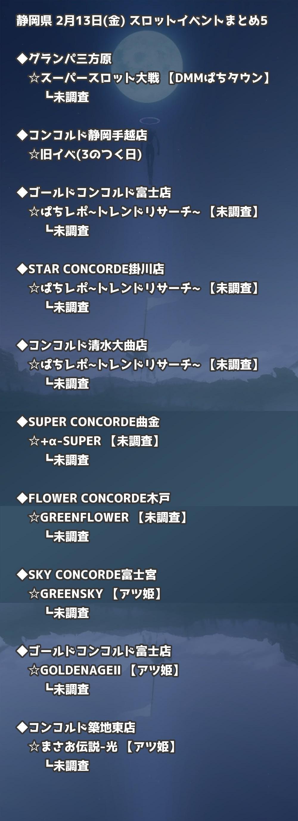 | ゴールドコンコルド富士店 | ぱちレポ~トレンドリサーチ~ | 未調査 |