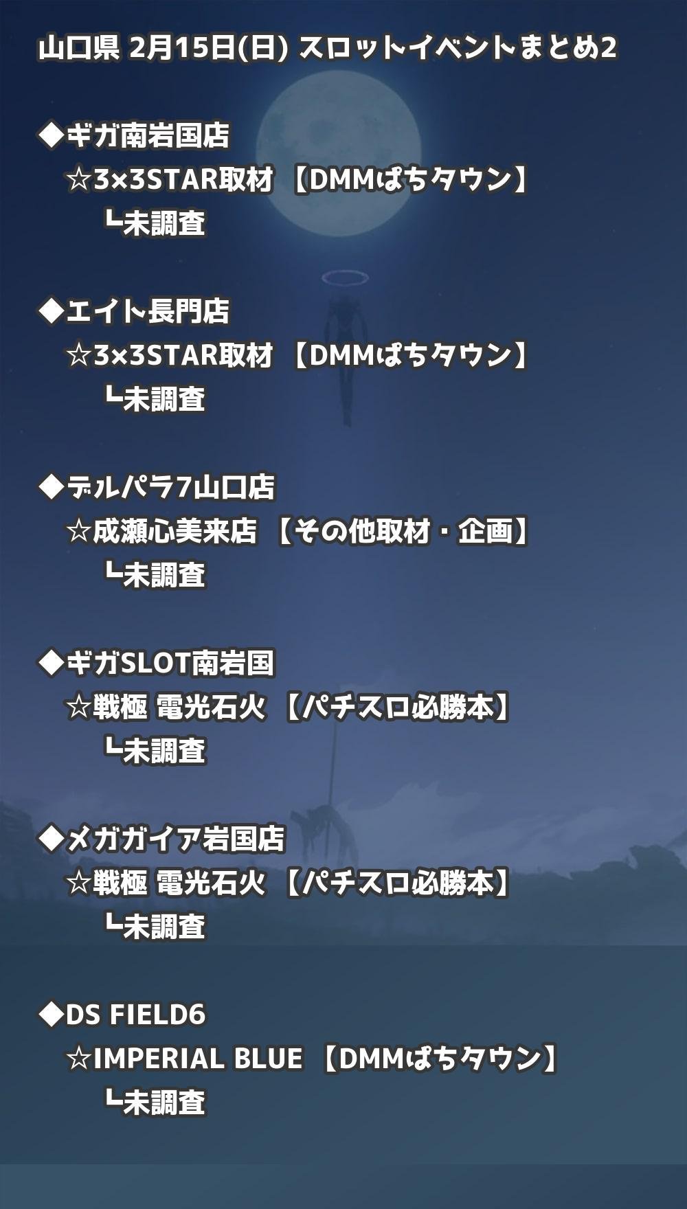 📊 山口県 2月15日(日) 勝てるパチンコ・スロット取材店舗一覧|おすすめ順