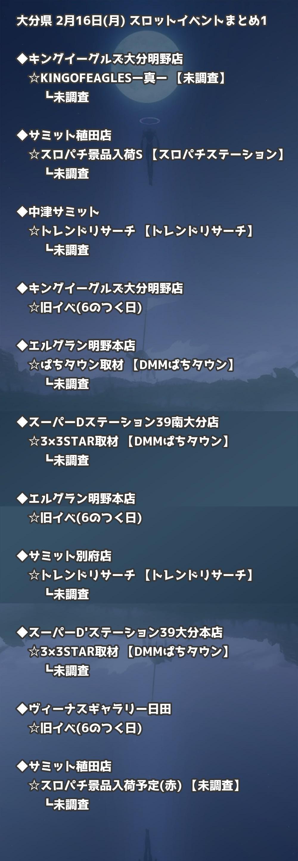 📊 大分県 2月16日(月) 勝てるパチンコ・スロット取材店舗一覧|おすすめ順