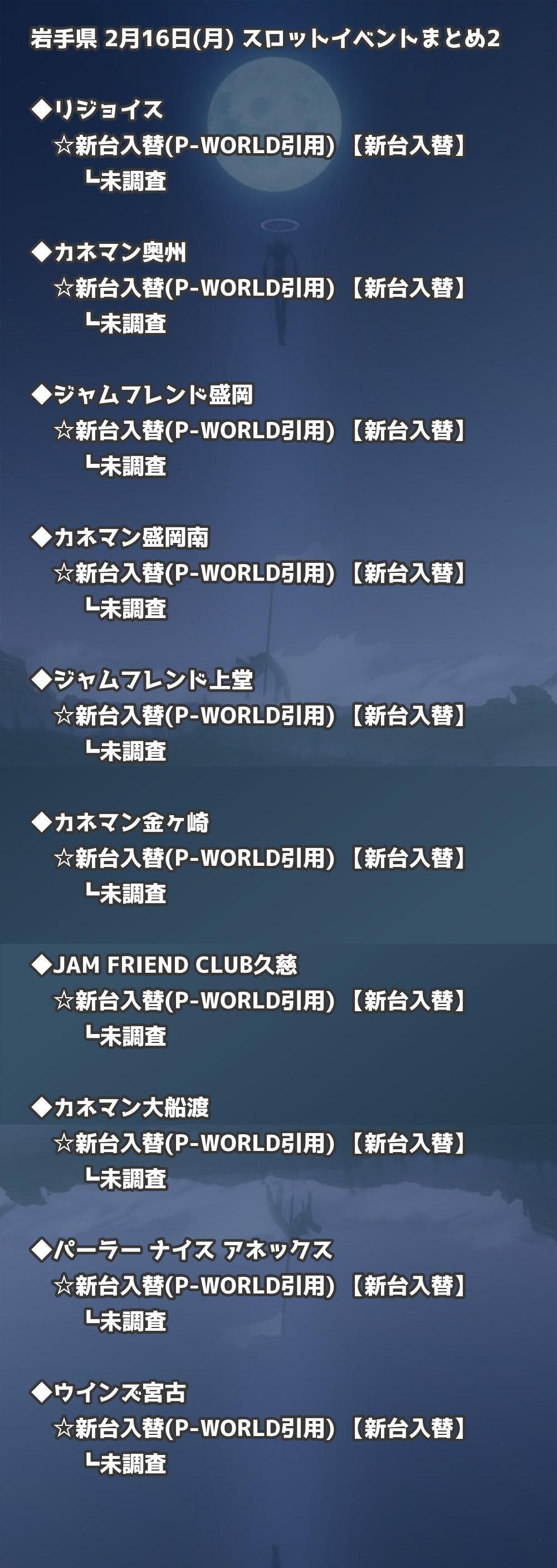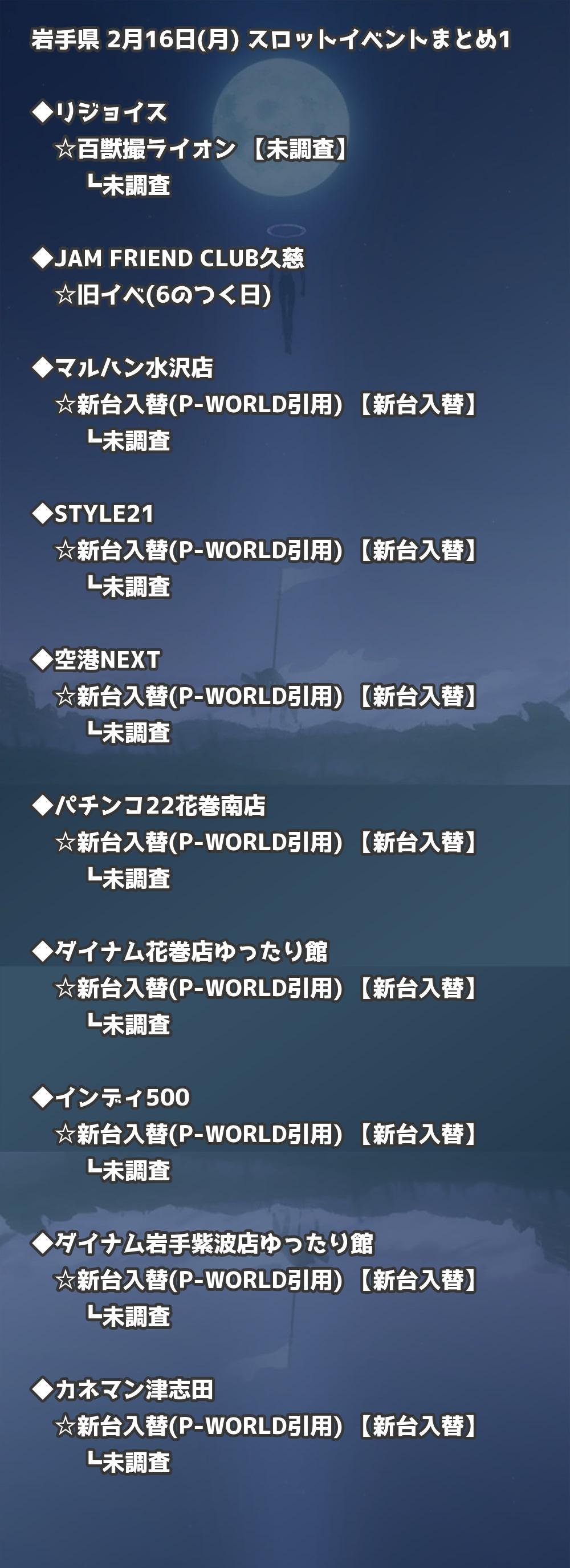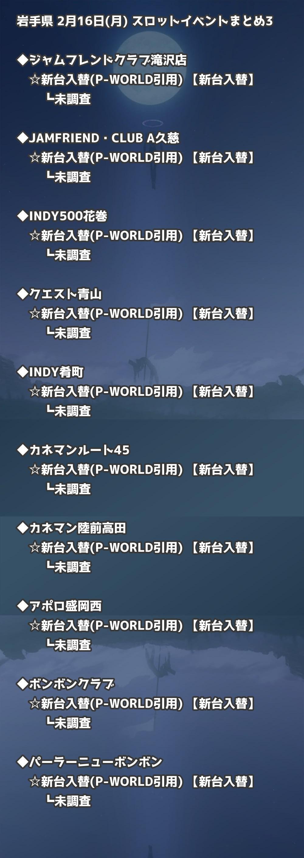 【岩手県】2月16日(月) パチンコホールイベント取材まとめ記事です。