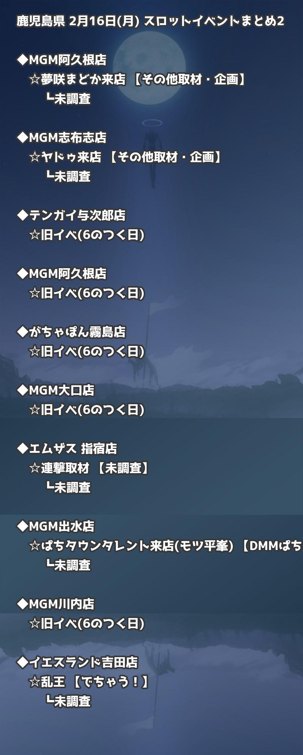 【鹿児島県】2月16日(月) パチンコホールイベント取材まとめ記事です。