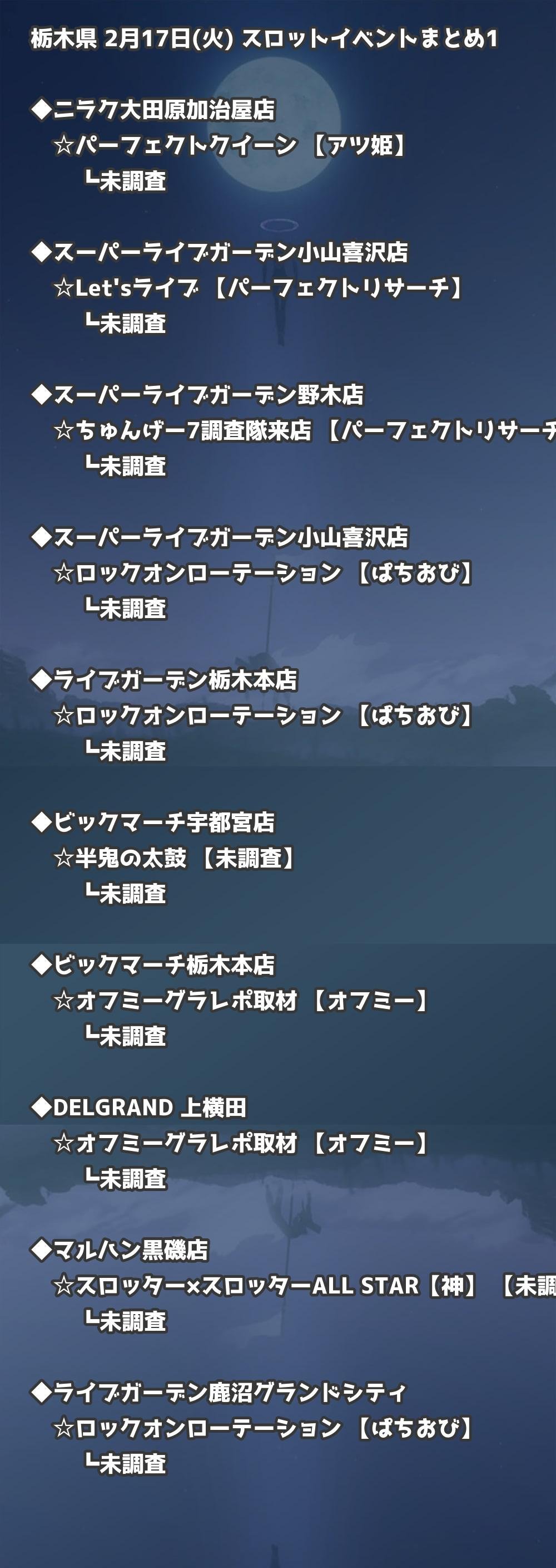 【栃木県】2月17日(火) パチンコホールイベント取材まとめ記事です。