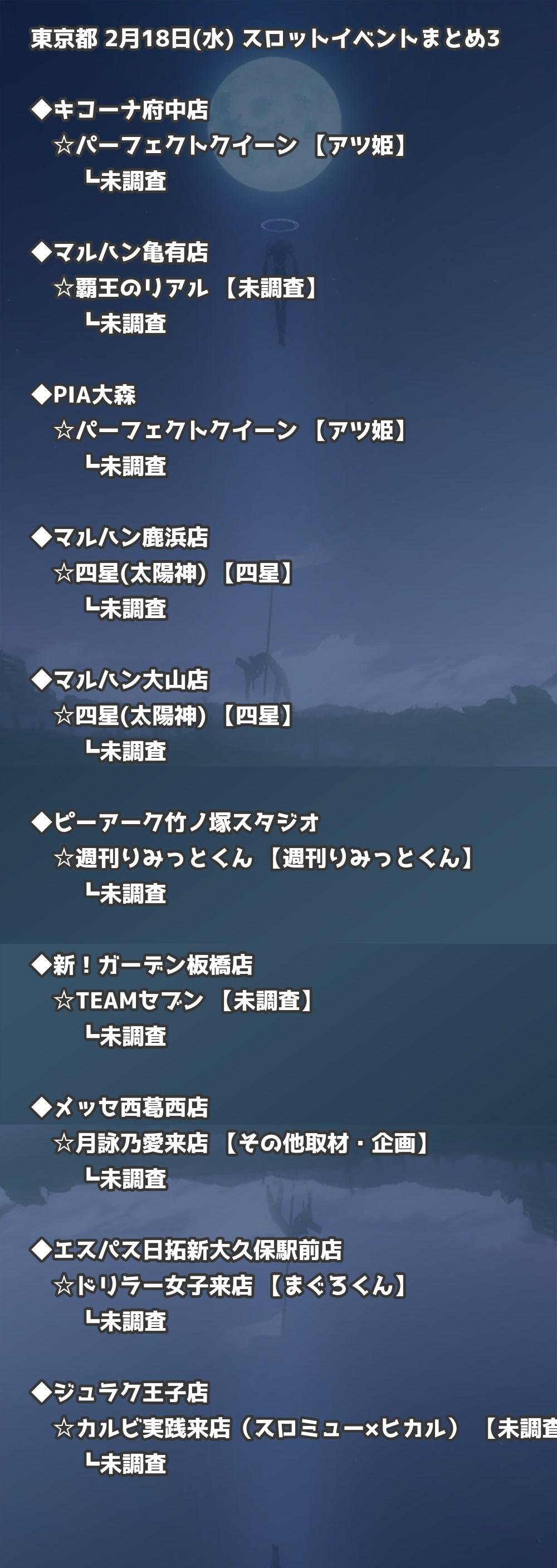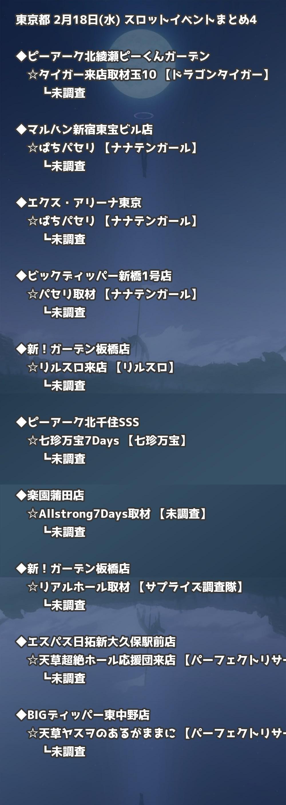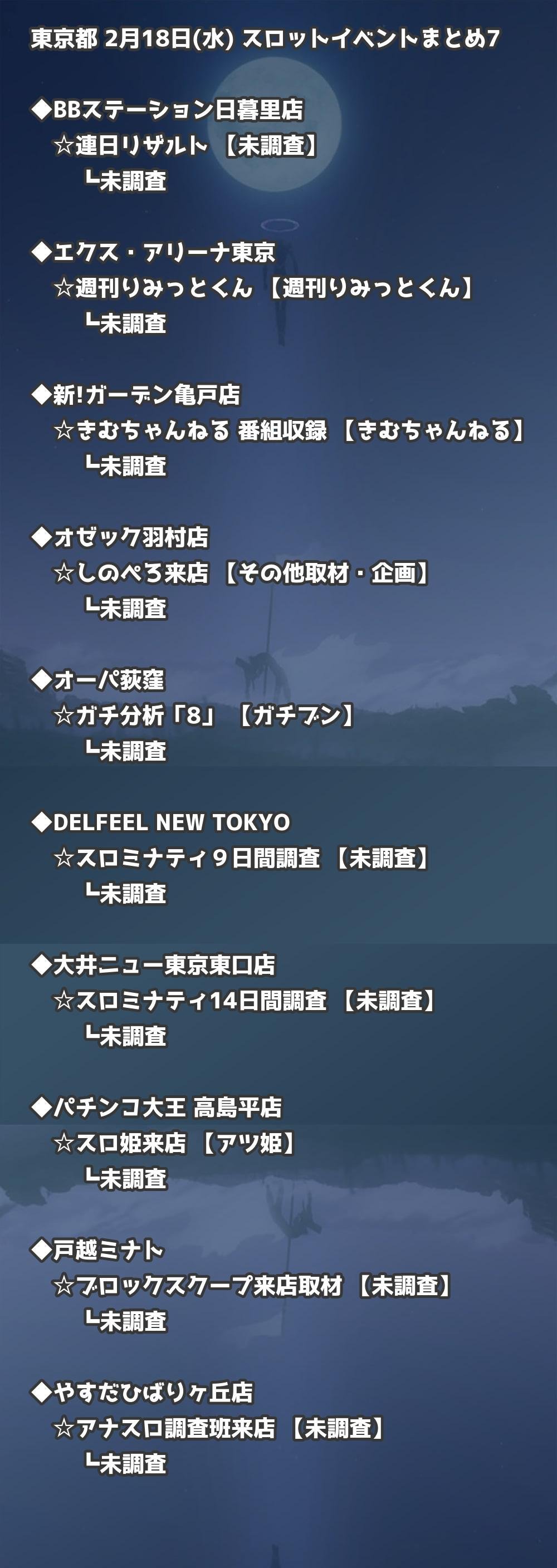 📊 東京都 2月18日(水) 勝てるパチンコ・スロット取材店舗一覧|おすすめ順