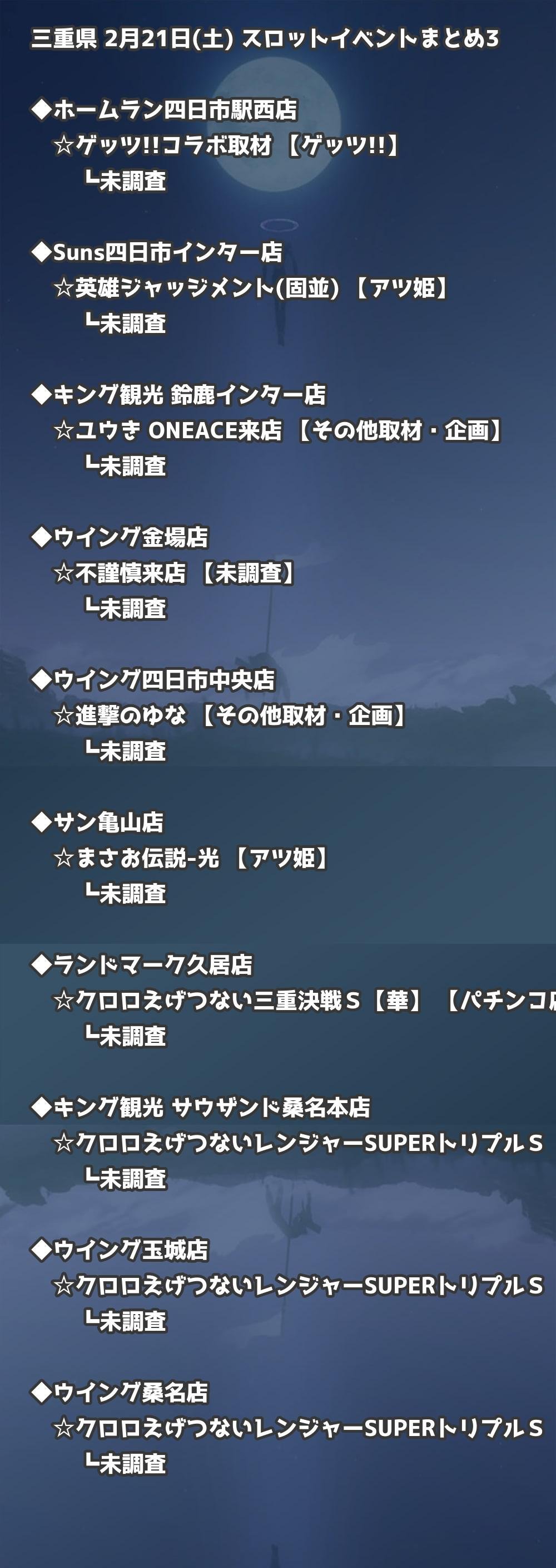 📊 三重県 2月21日(土) 勝てるパチンコ・スロット取材店舗一覧|おすすめ順