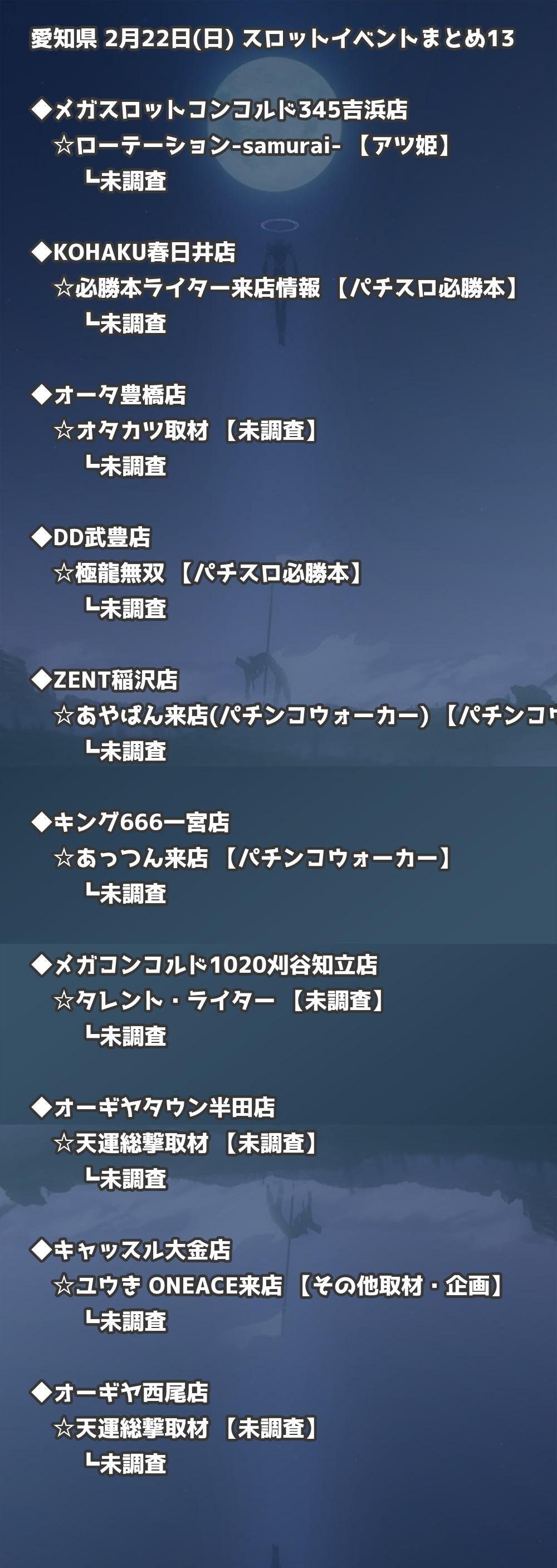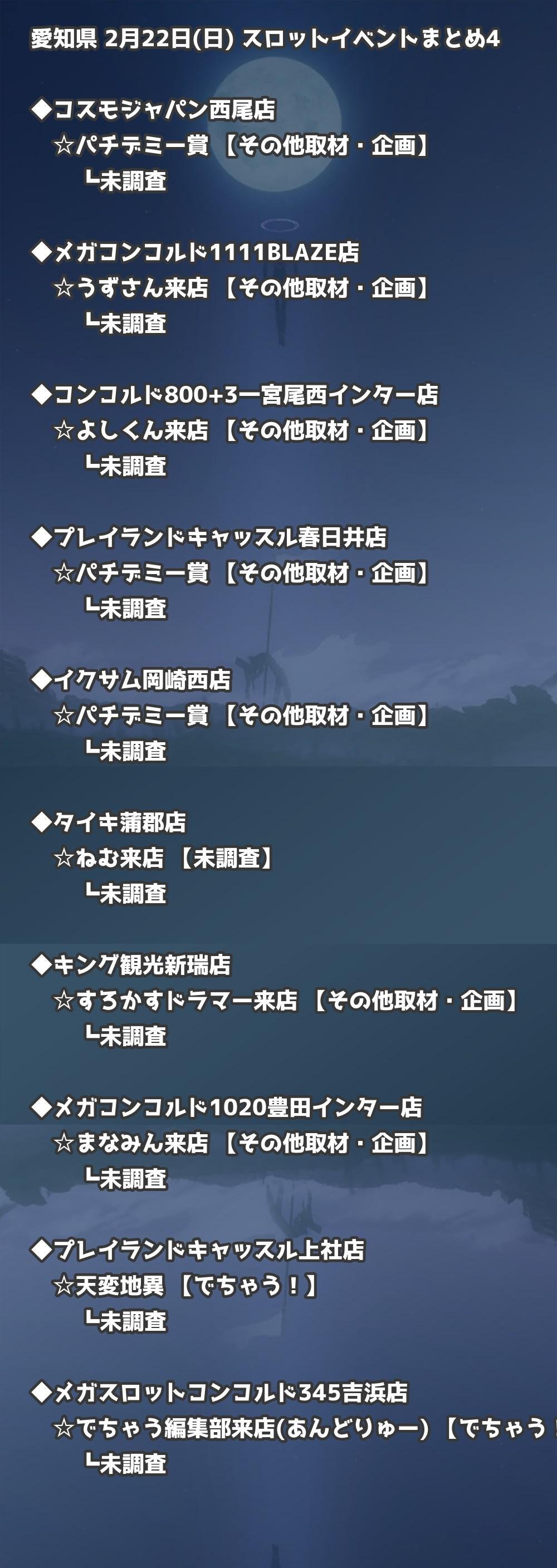 📊 愛知県 2月22日(日) 勝てるパチンコ・スロット取材店舗一覧|おすすめ順