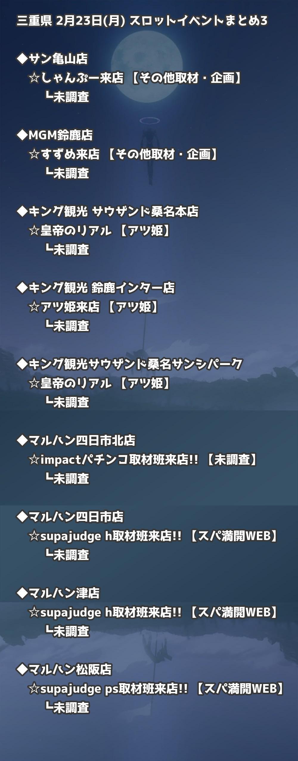 【三重県】2月23日(月) パチンコホールイベント取材まとめ記事です。