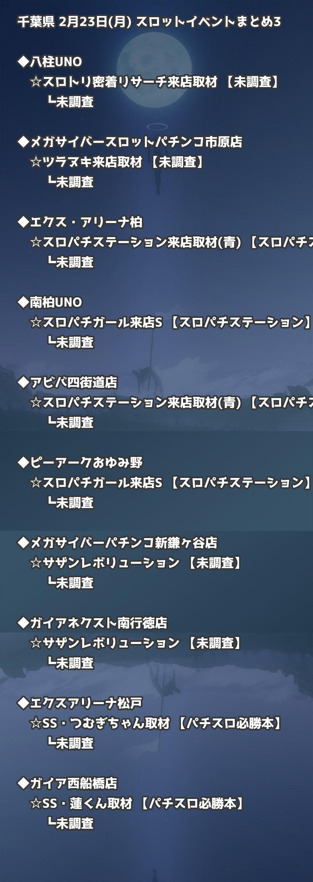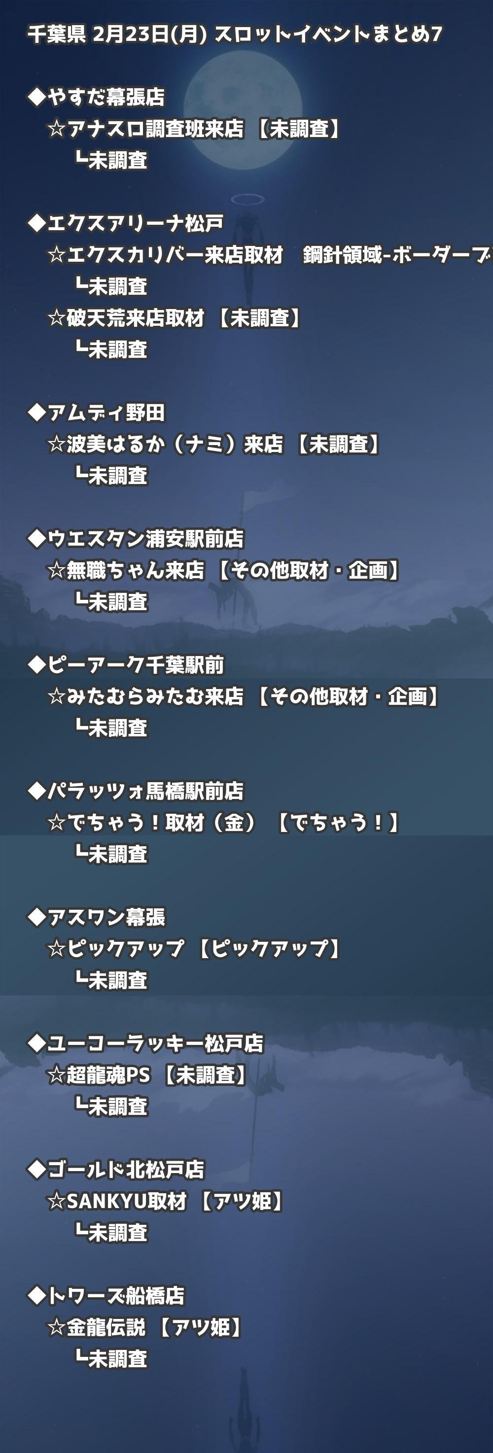 ※店舗結果掲載済 【千葉】2月23日(月) 今日のスロット・パチンコ激熱イベント取材まとめ