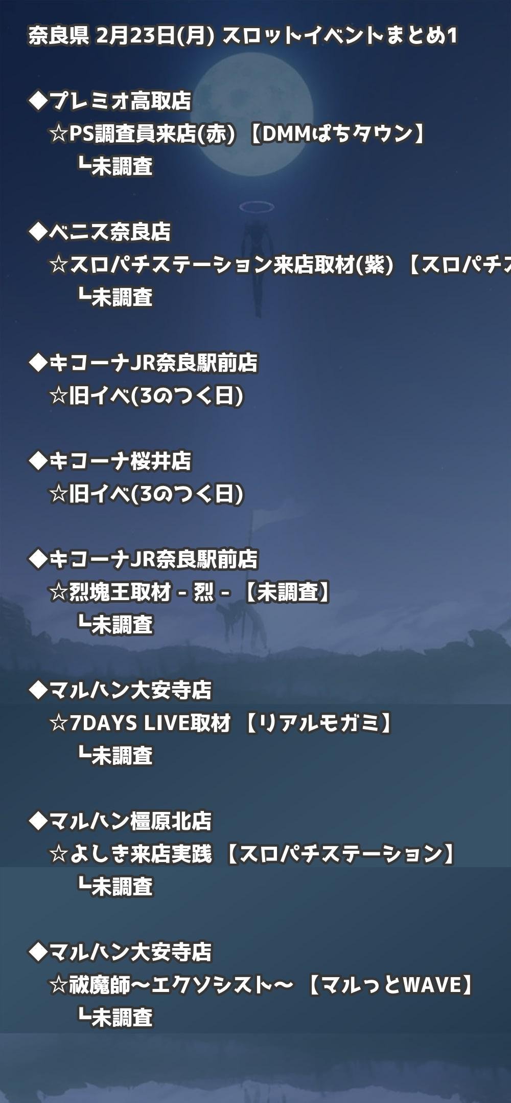 📊 奈良県 2月23日(月) 勝てるパチンコ・スロット取材店舗一覧|おすすめ順