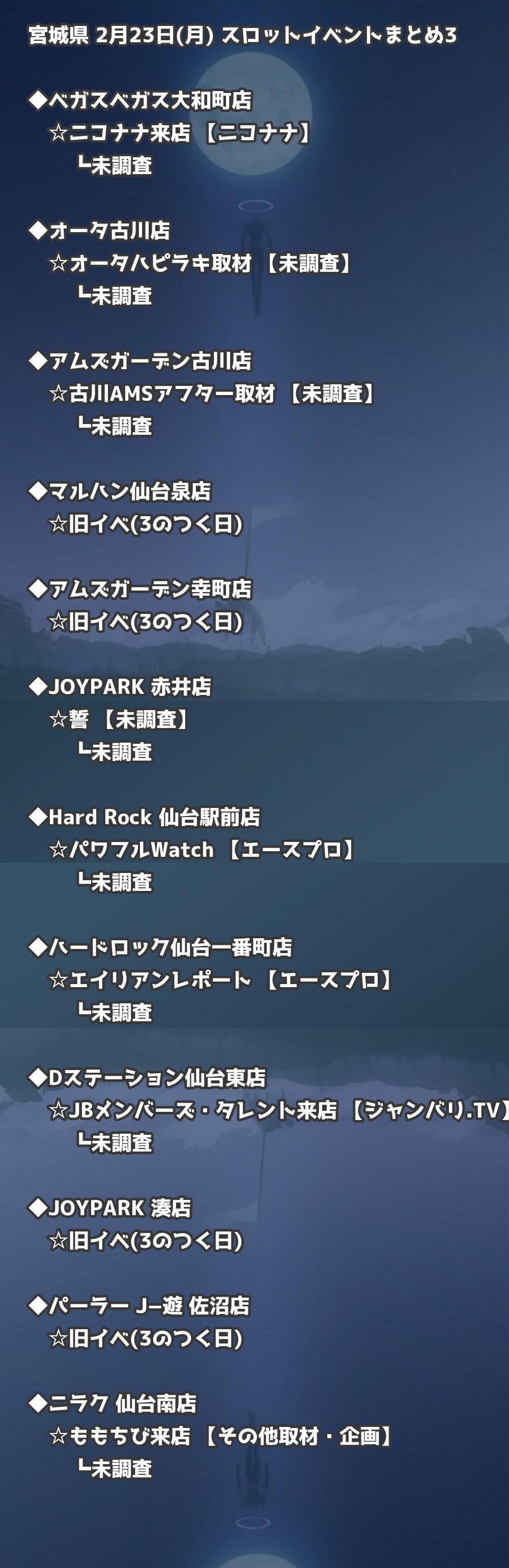 【宮城県】2月23日(月) パチンコホールイベント取材まとめ記事です。