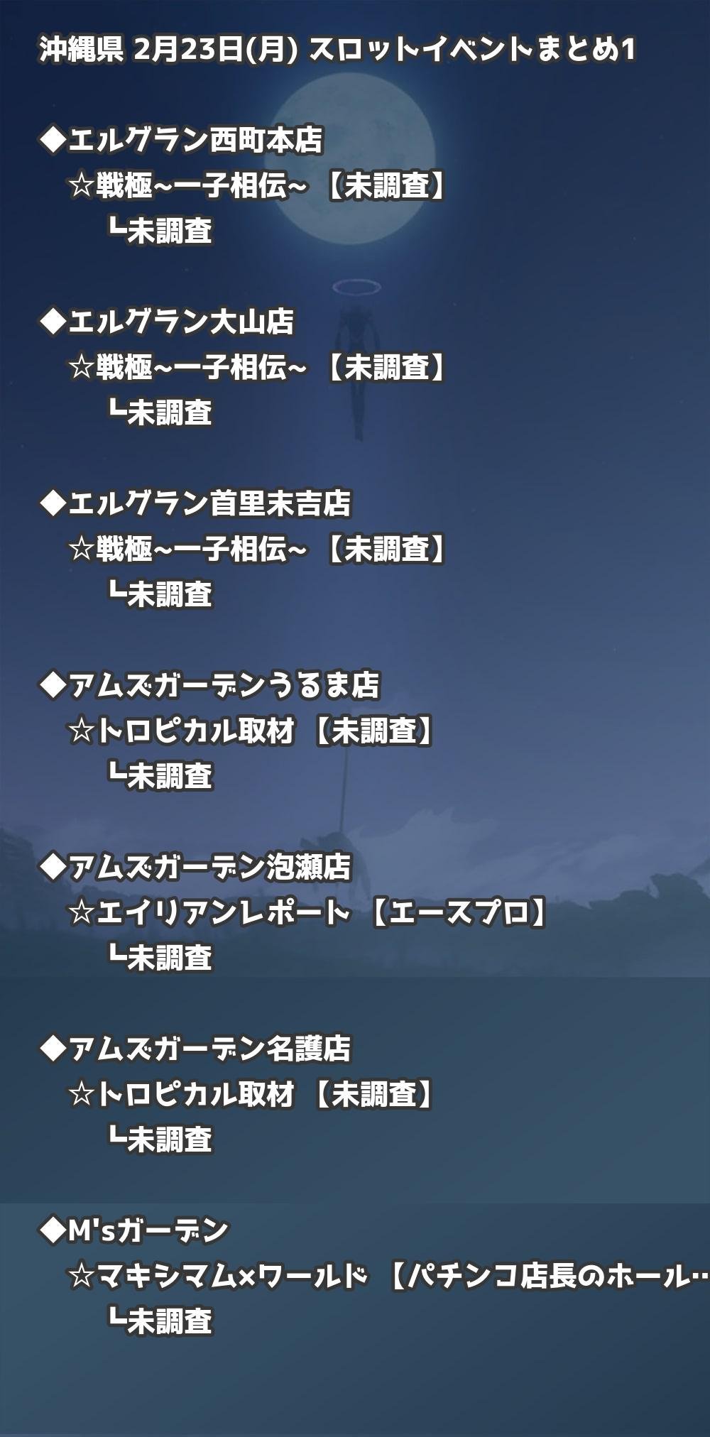 【沖縄県】2月23日(月) パチンコホールイベント取材まとめ記事です。