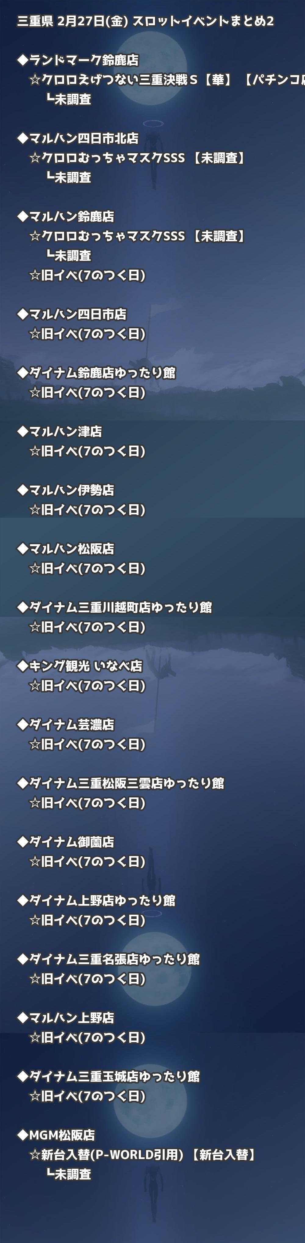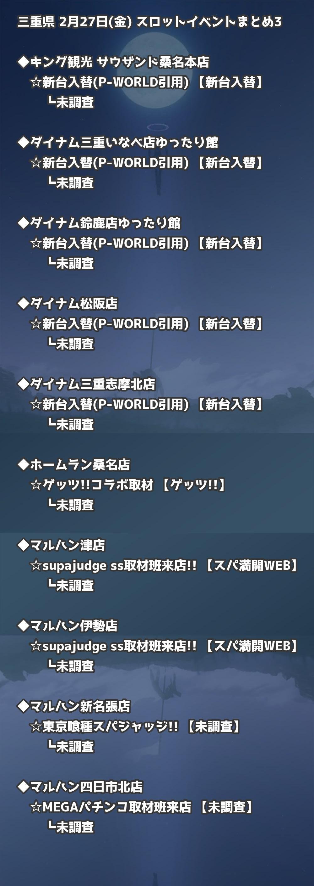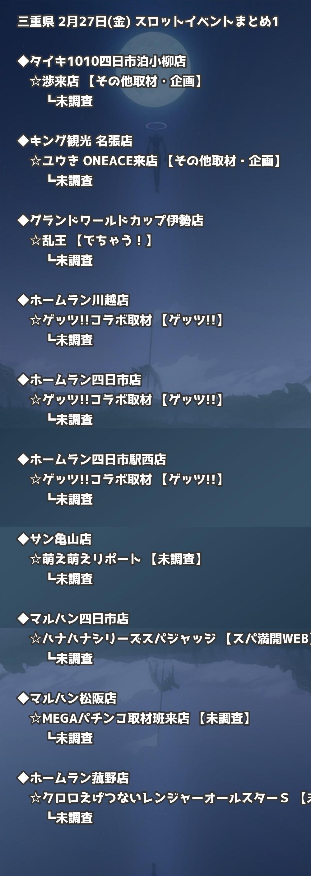 【三重県】2月27日(金) パチンコホールイベント取材まとめ記事です。