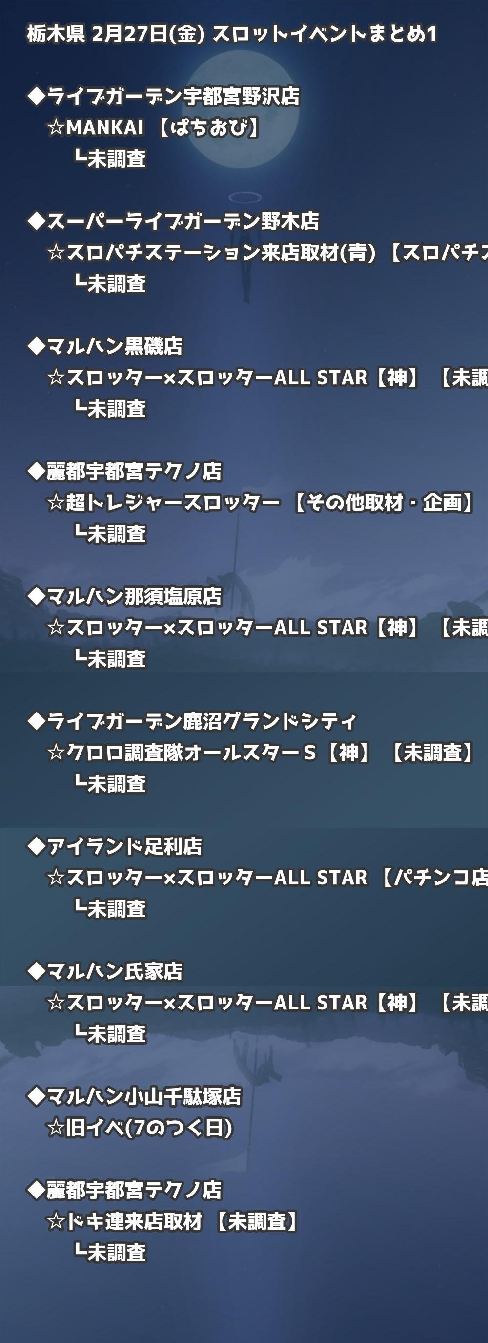 📊 栃木県 2月27日(金) 勝てるパチンコ・スロット取材店舗一覧|おすすめ順