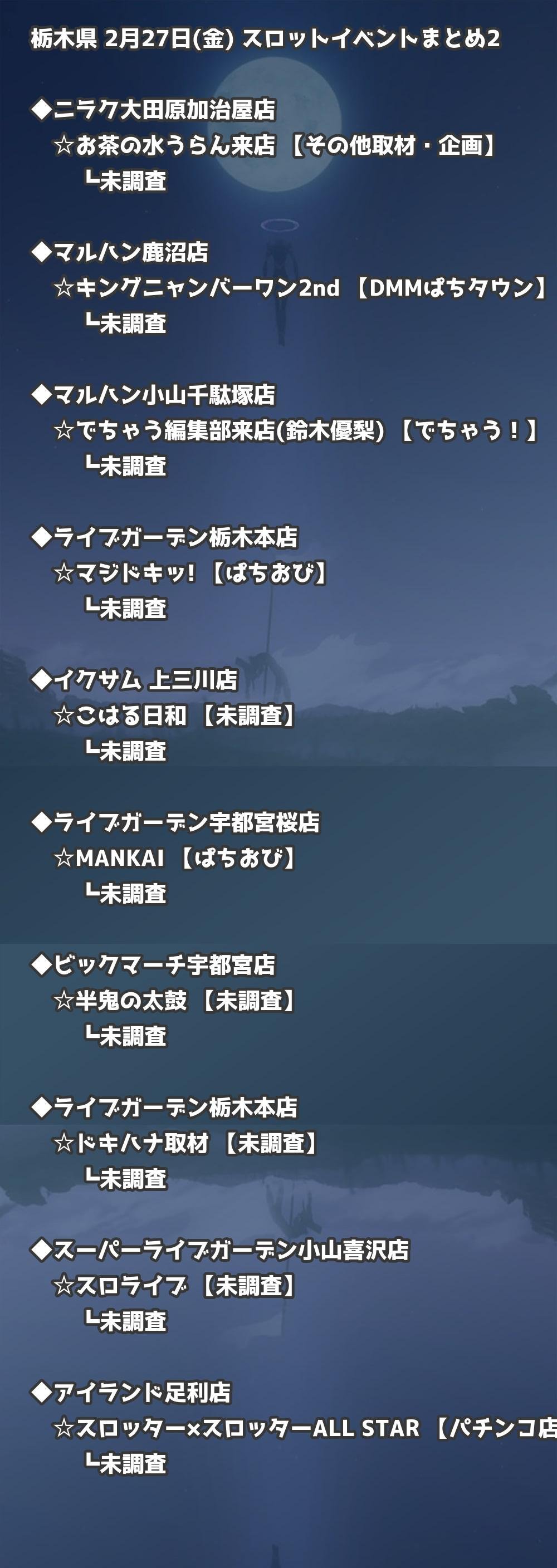 【栃木県】2月27日(金) パチンコホールイベント取材まとめ記事です。