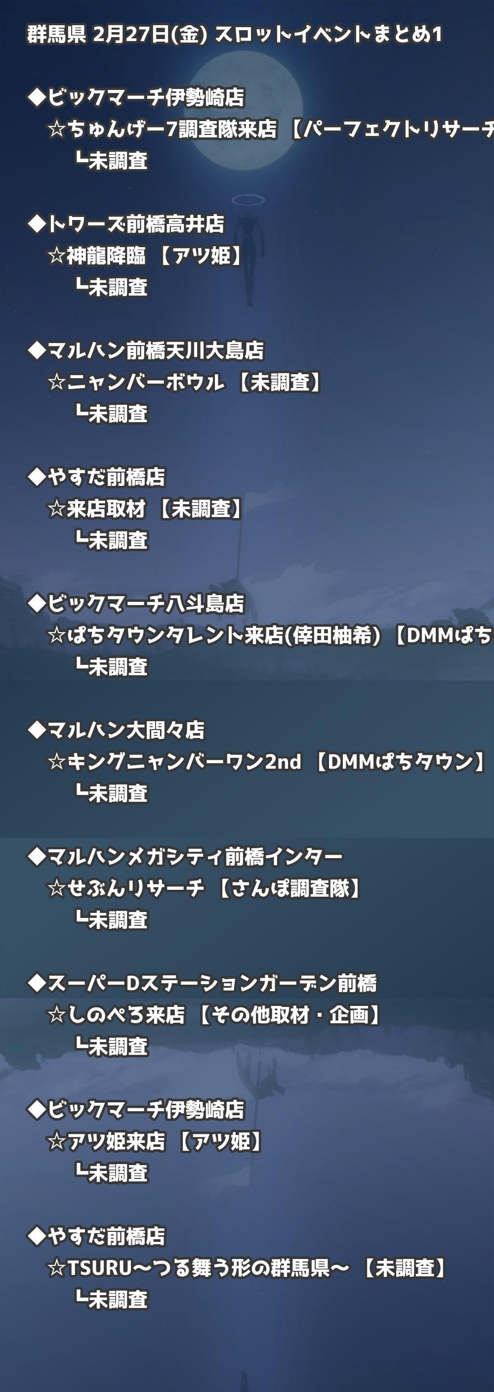 【群馬県】2月27日(金) パチンコホールイベント取材まとめ記事です。