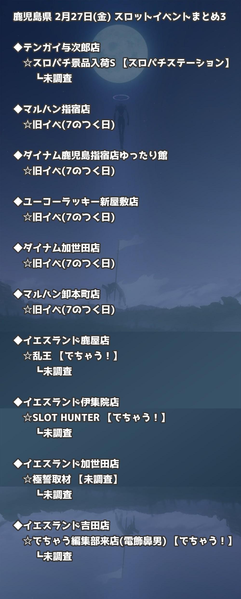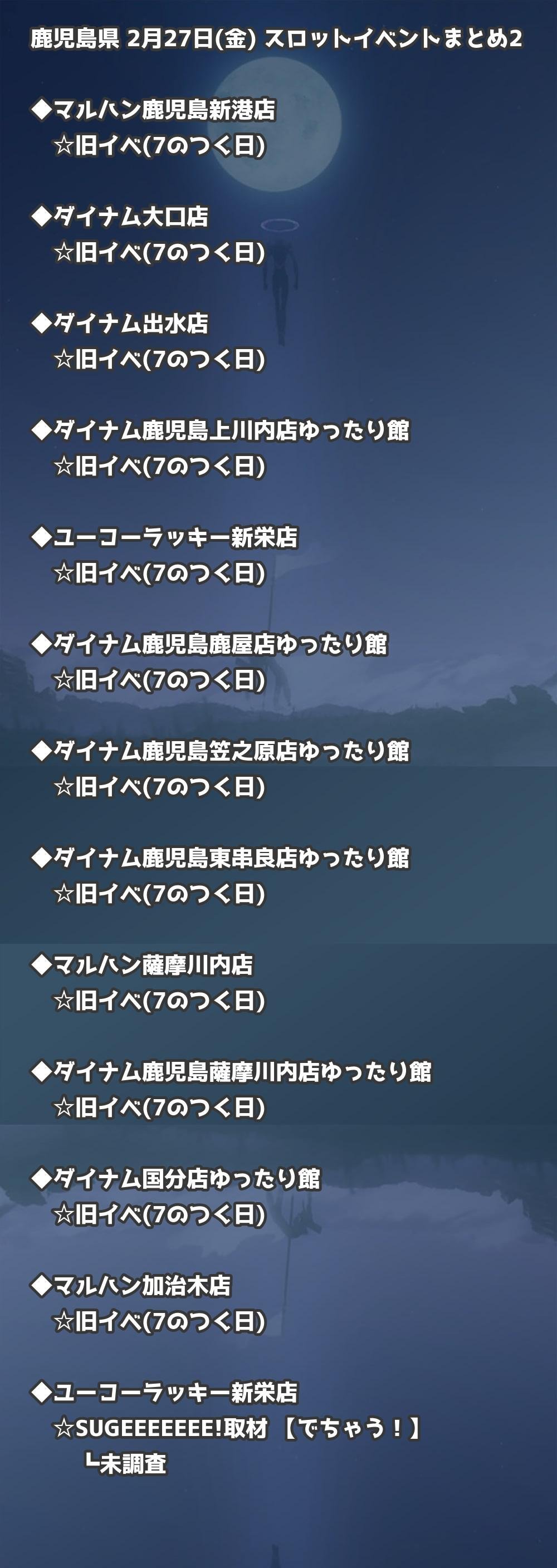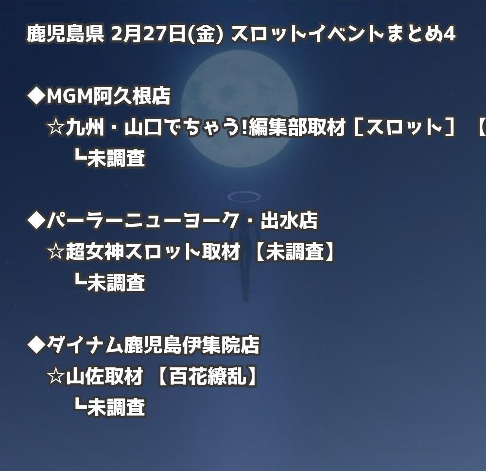 【鹿児島県】2月27日(金) パチンコホールイベント取材まとめ記事です。