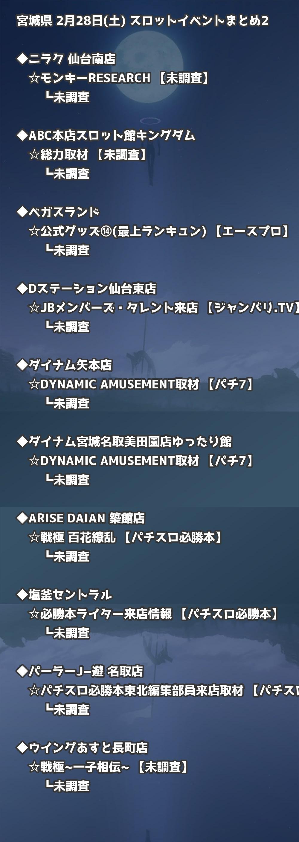 【宮城県】2月28日(土) パチンコホールイベント取材まとめ記事です。