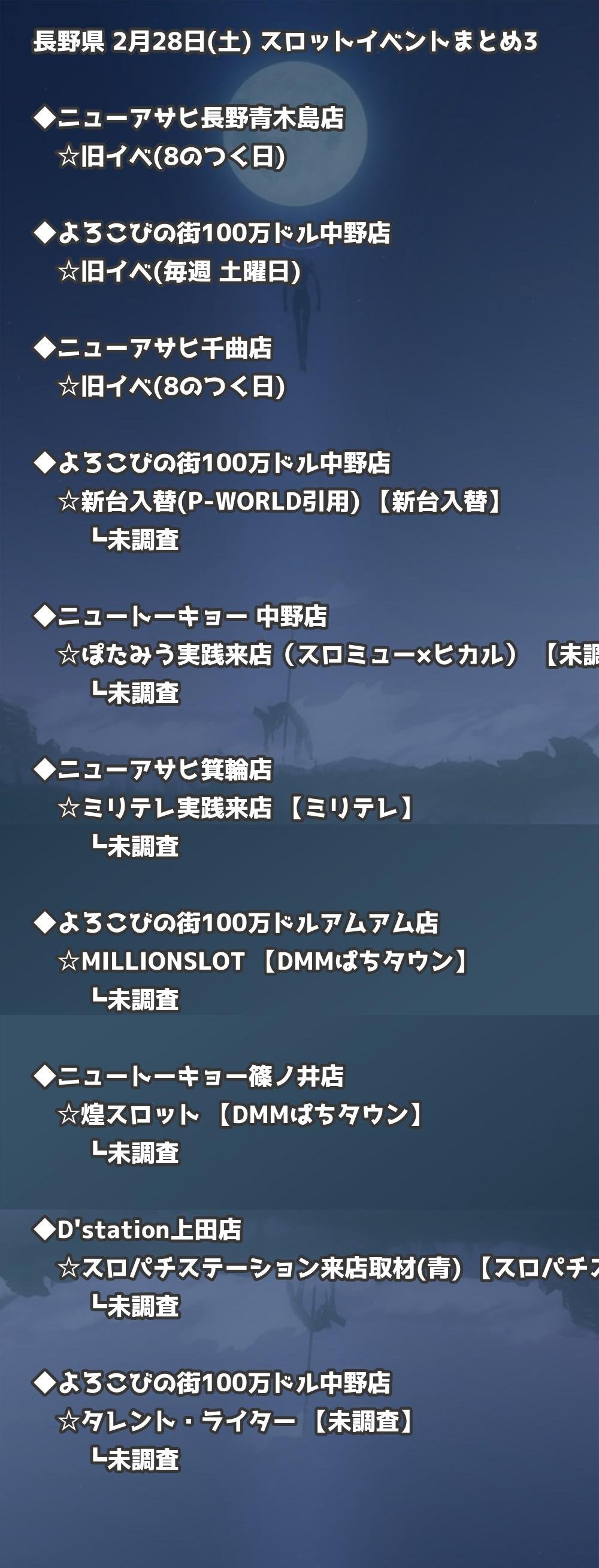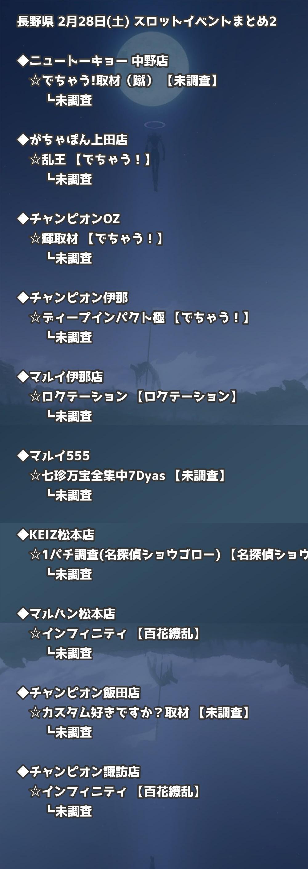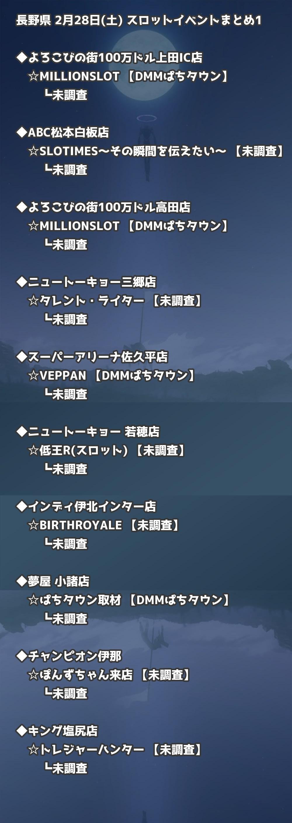 📊 長野県 2月28日(土) 勝てるパチンコ・スロット取材店舗一覧|おすすめ順