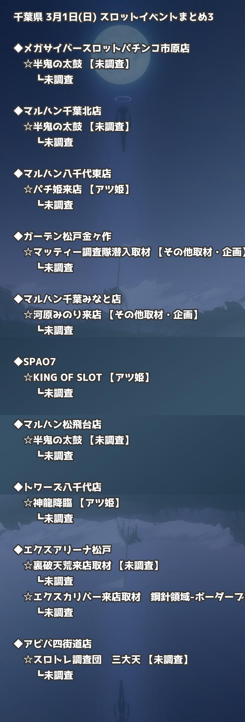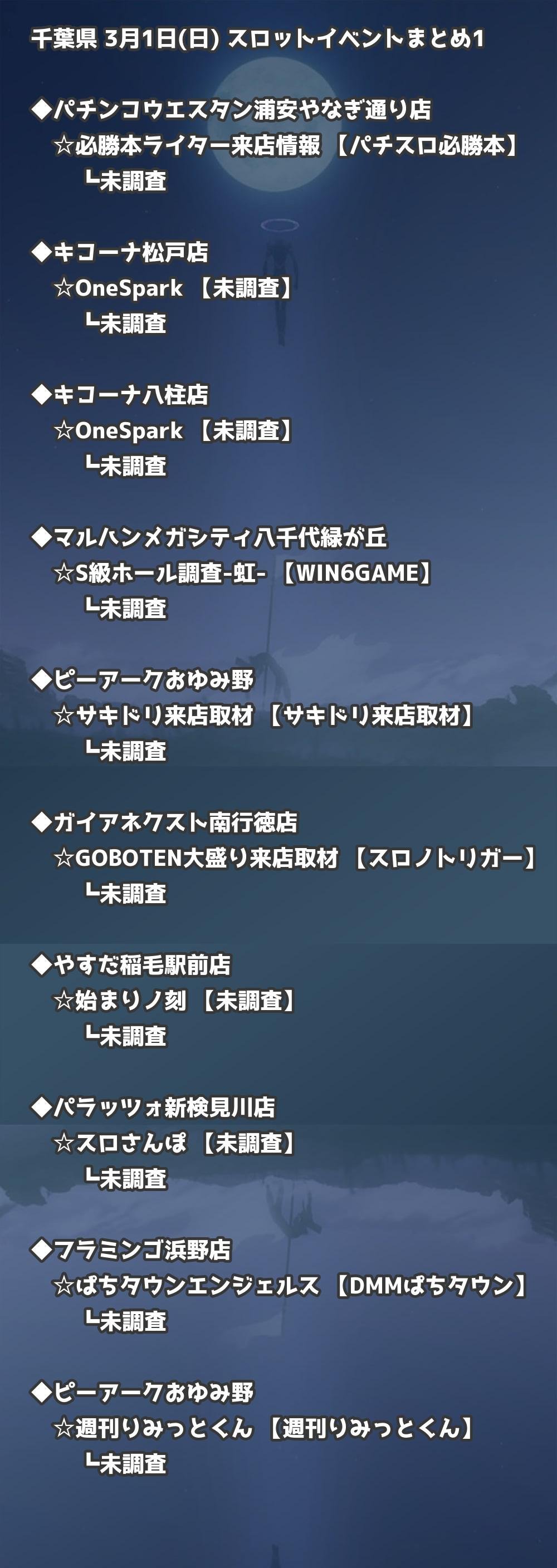 📊 千葉県 3月1日(日) 勝てるパチンコ・スロット取材店舗一覧|おすすめ順