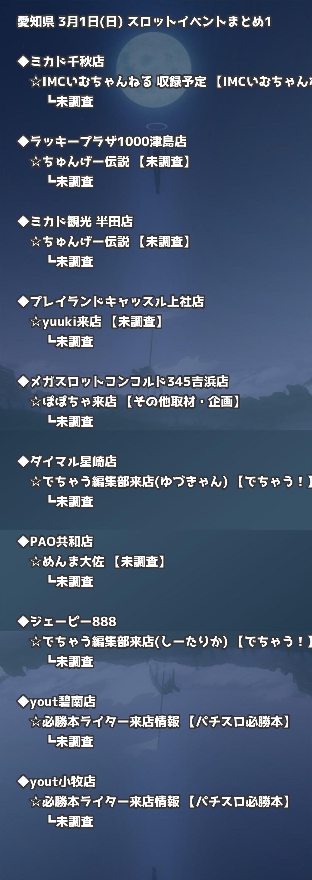 【愛知県】3月1日(日) パチンコホールイベント取材まとめ記事です。