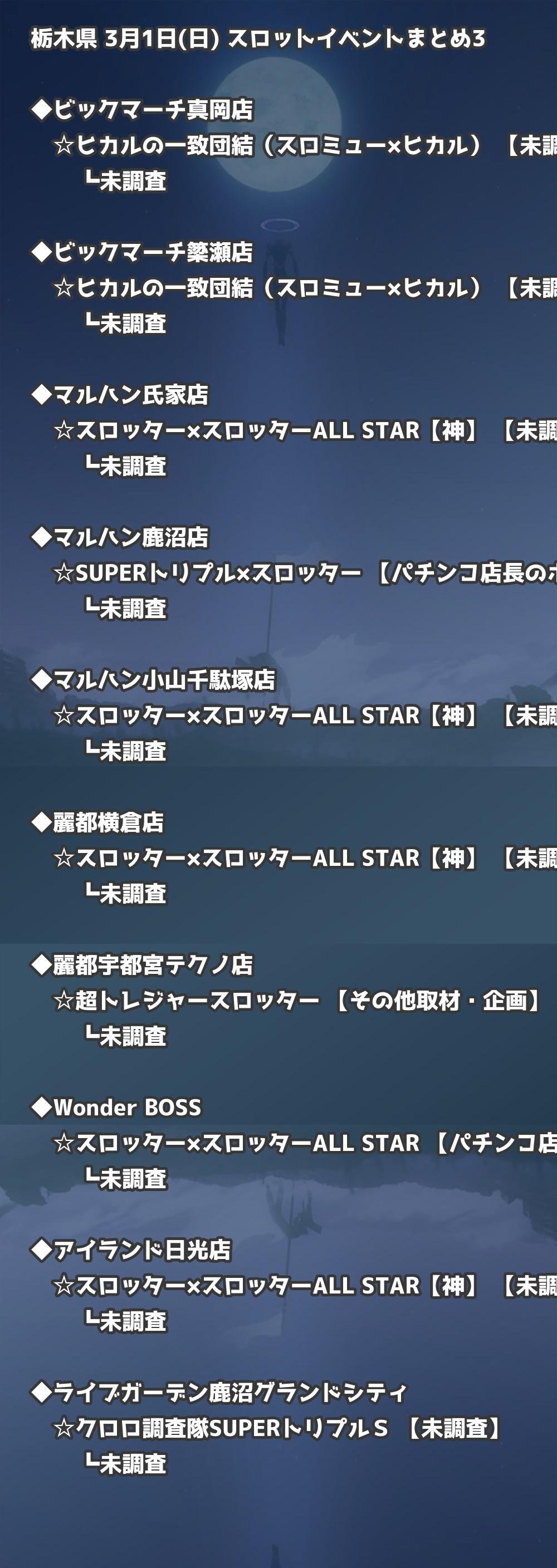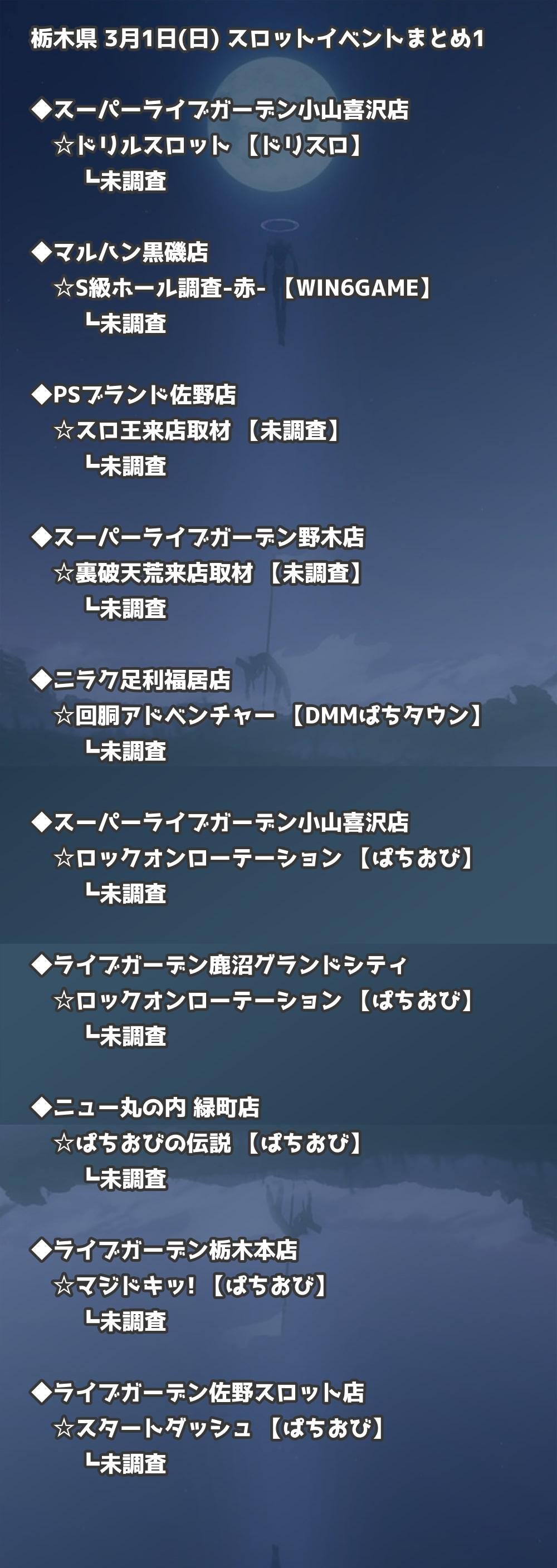 【栃木県】3月1日(日) パチンコホールイベント取材まとめ記事です。