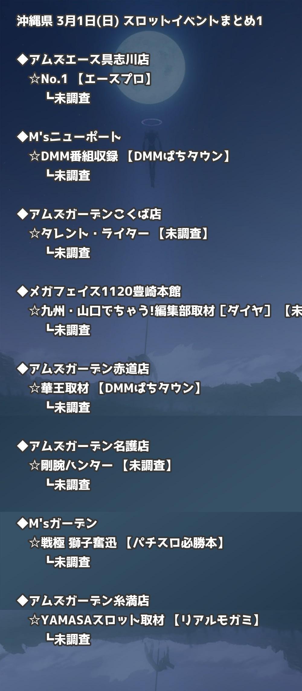 【沖縄県】3月1日(日) パチンコホールイベント取材まとめ記事です。