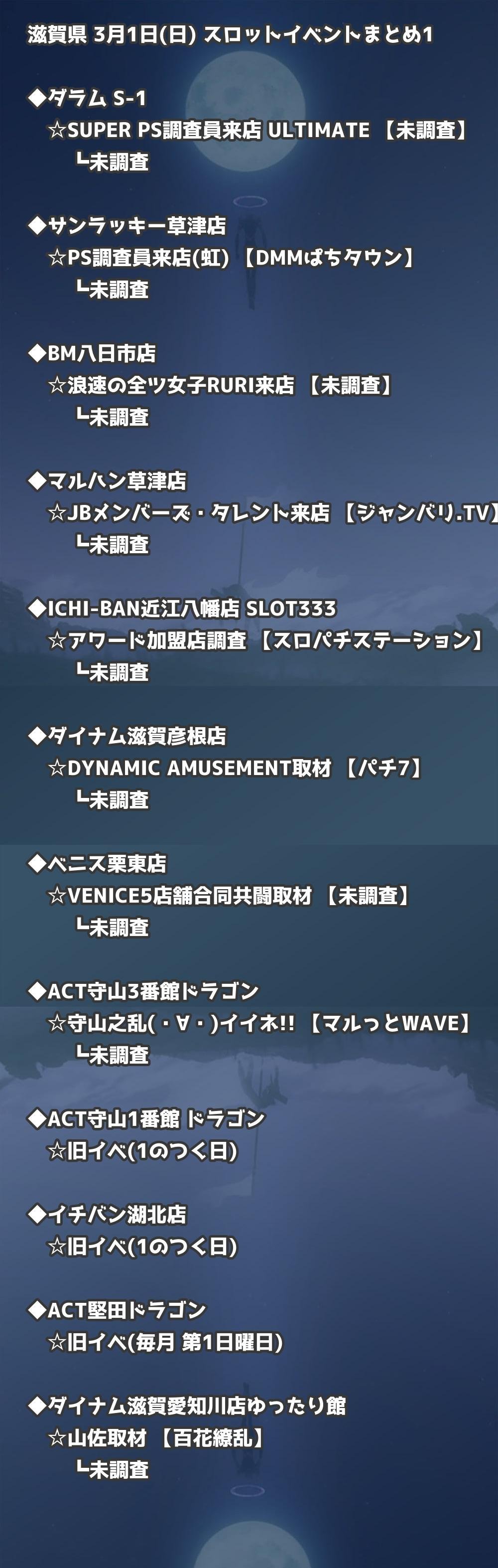 【滋賀県】3月1日(日) パチンコホールイベント取材まとめ記事です。