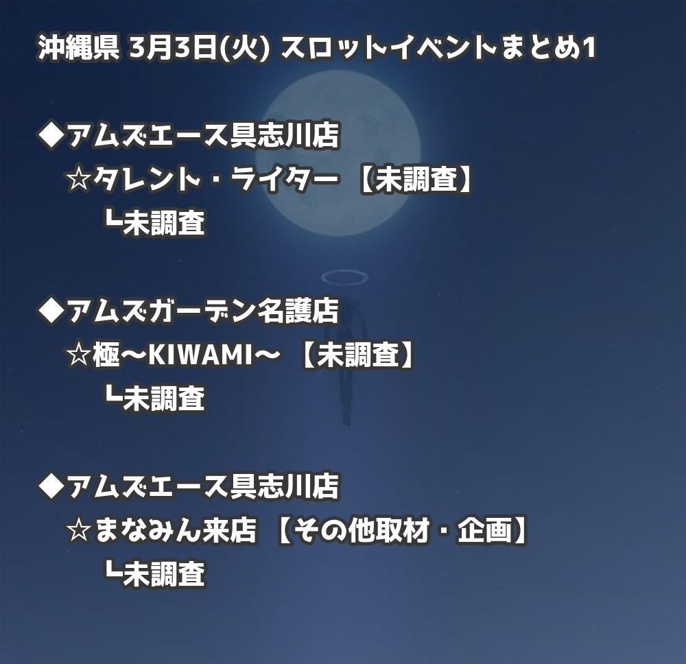 【沖縄県】3月3日(火) パチンコホールイベント取材まとめ記事です。