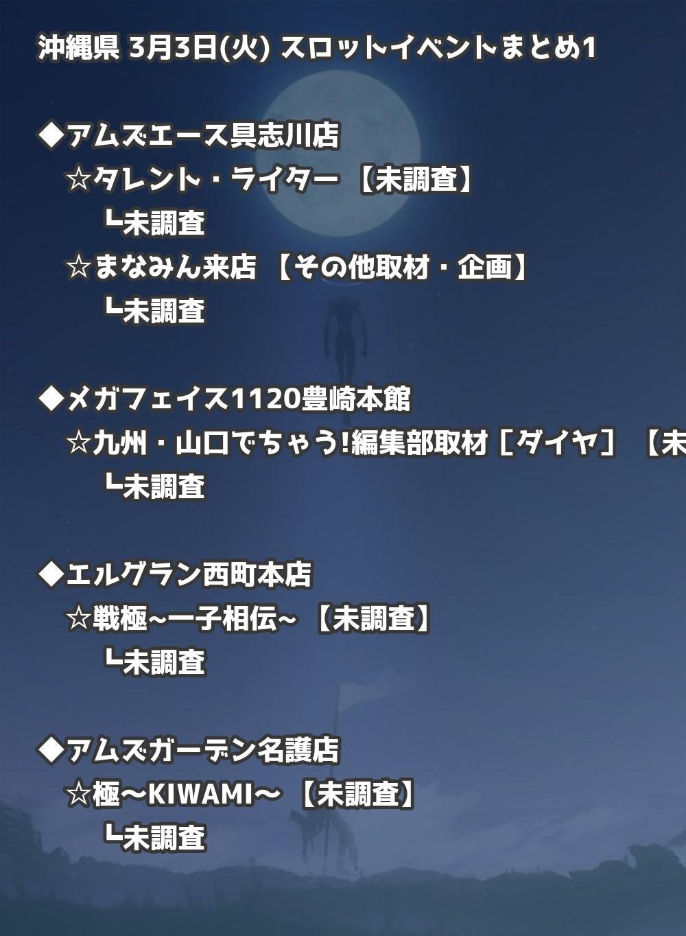 📊 沖縄県 3月3日(火) 勝てるパチンコ・スロット取材店舗一覧|おすすめ順