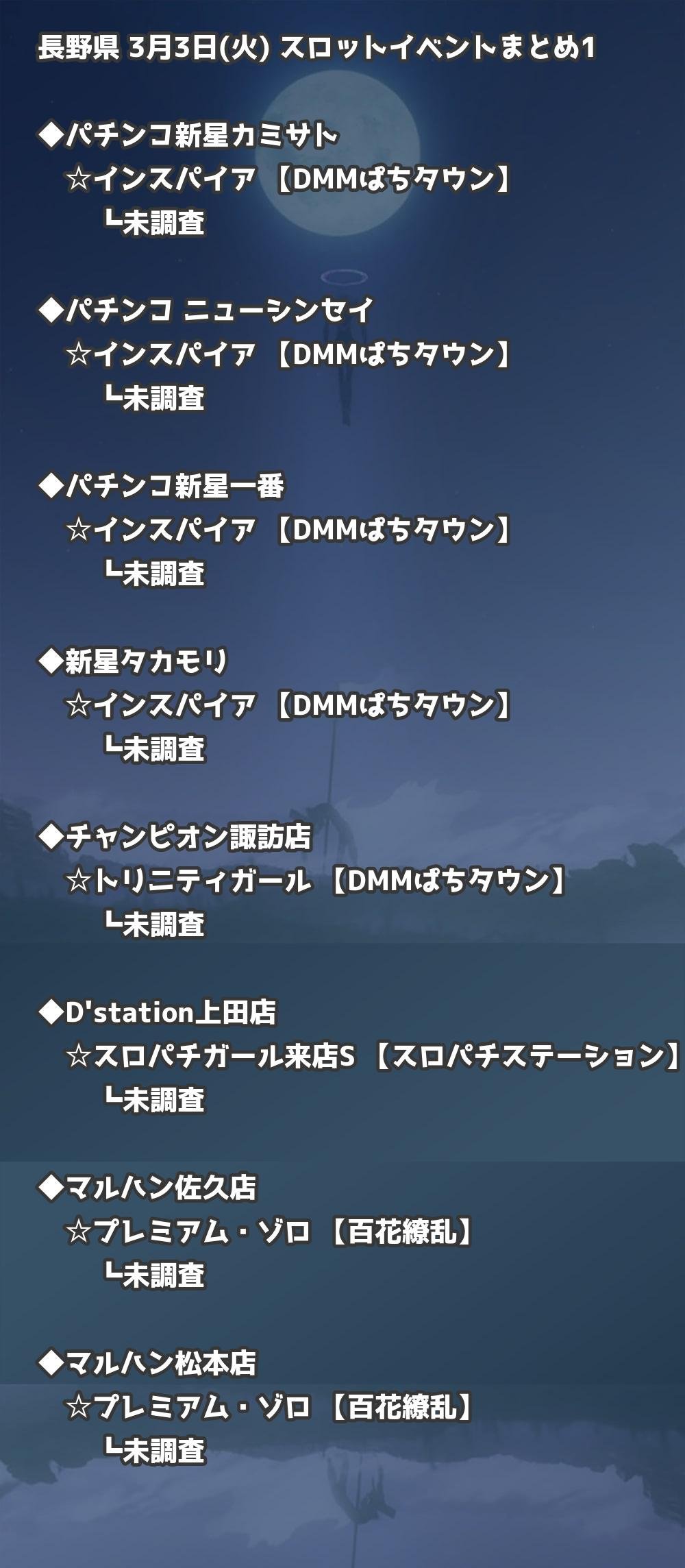 📊 長野県 3月3日(火) 勝てるパチンコ・スロット取材店舗一覧|おすすめ順