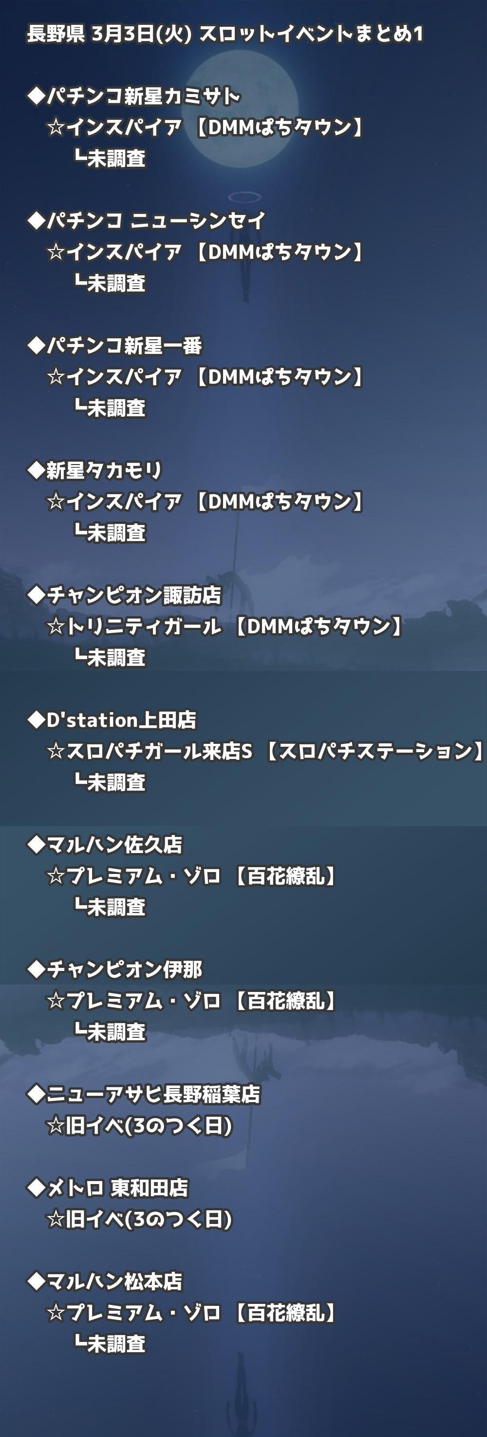 【長野県】3月3日(火) パチンコホールイベント取材まとめ記事です。
