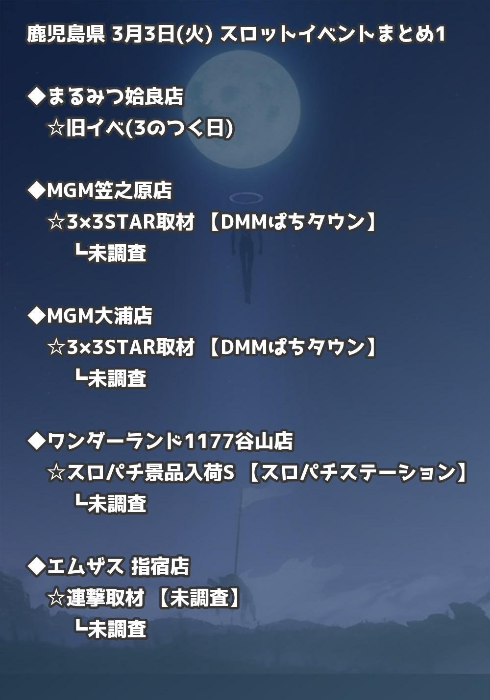 【鹿児島県】3月3日(火) パチンコホールイベント取材まとめ記事です。