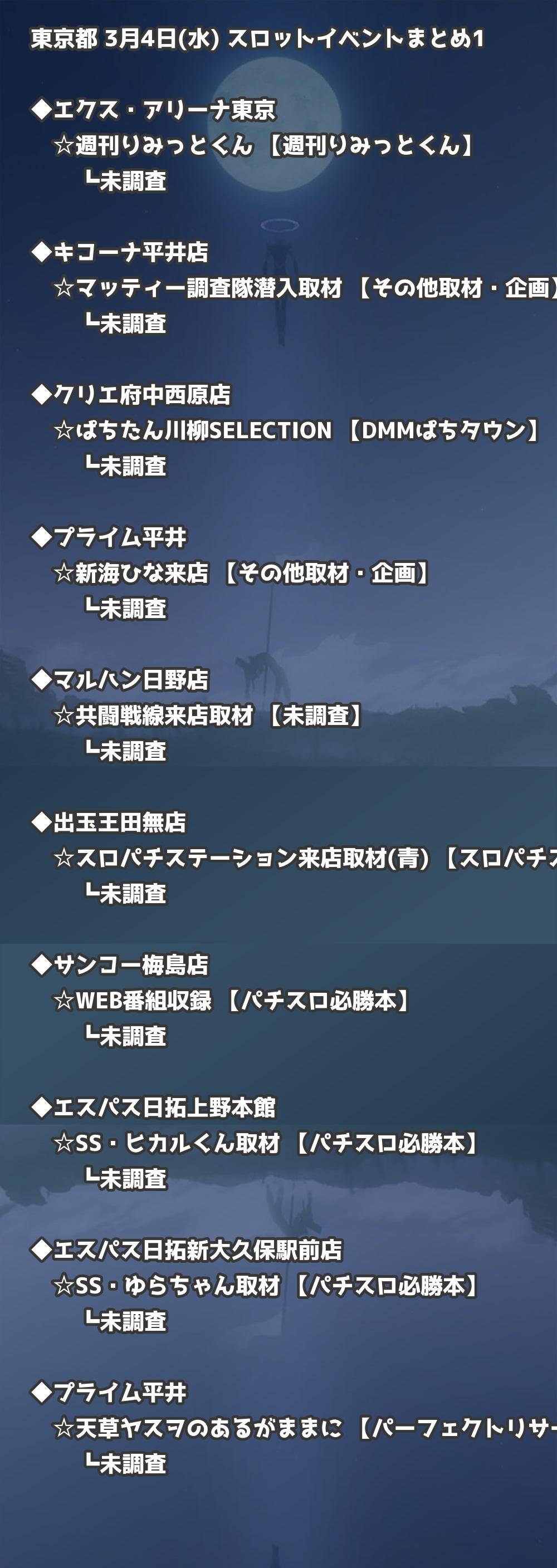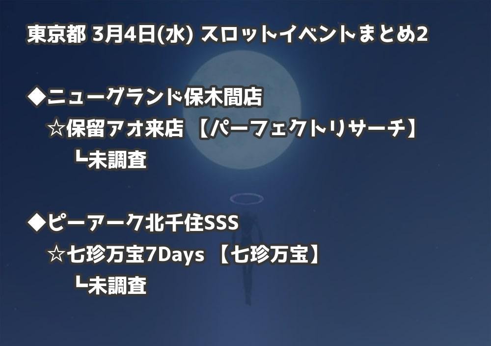 【東京都】3月4日(水) パチンコホールイベント取材まとめ記事です。