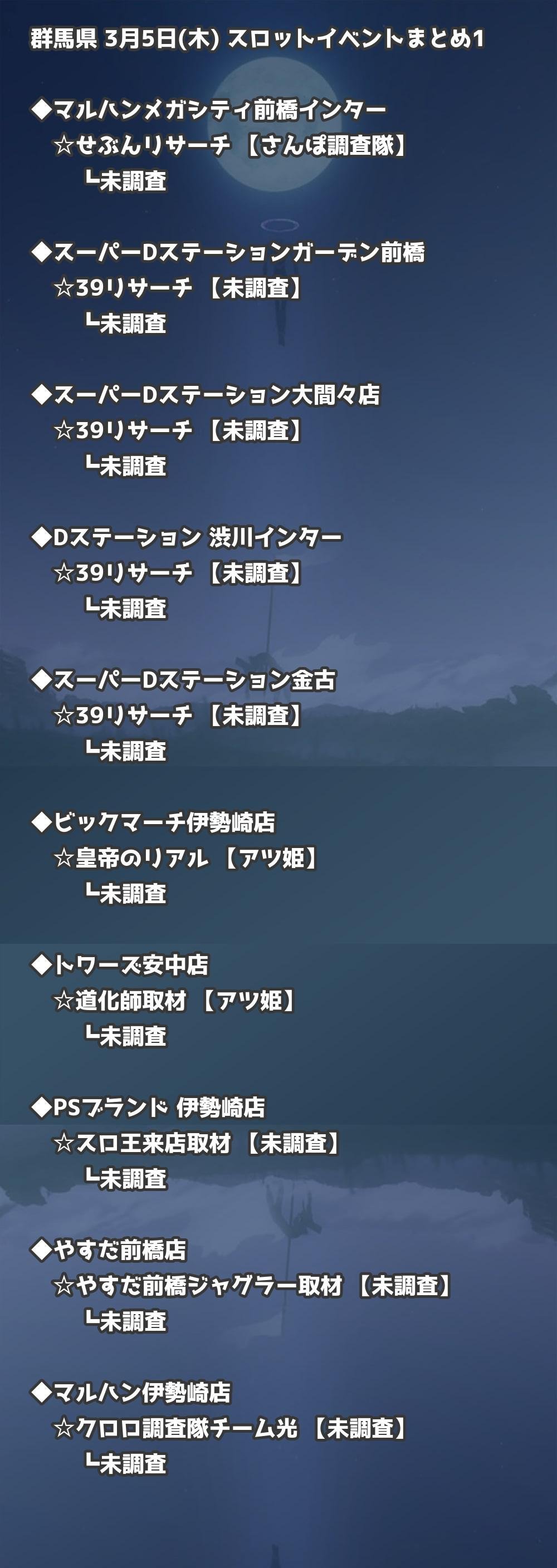 【群馬県】3月5日(木) パチンコホールイベント取材まとめ記事です。