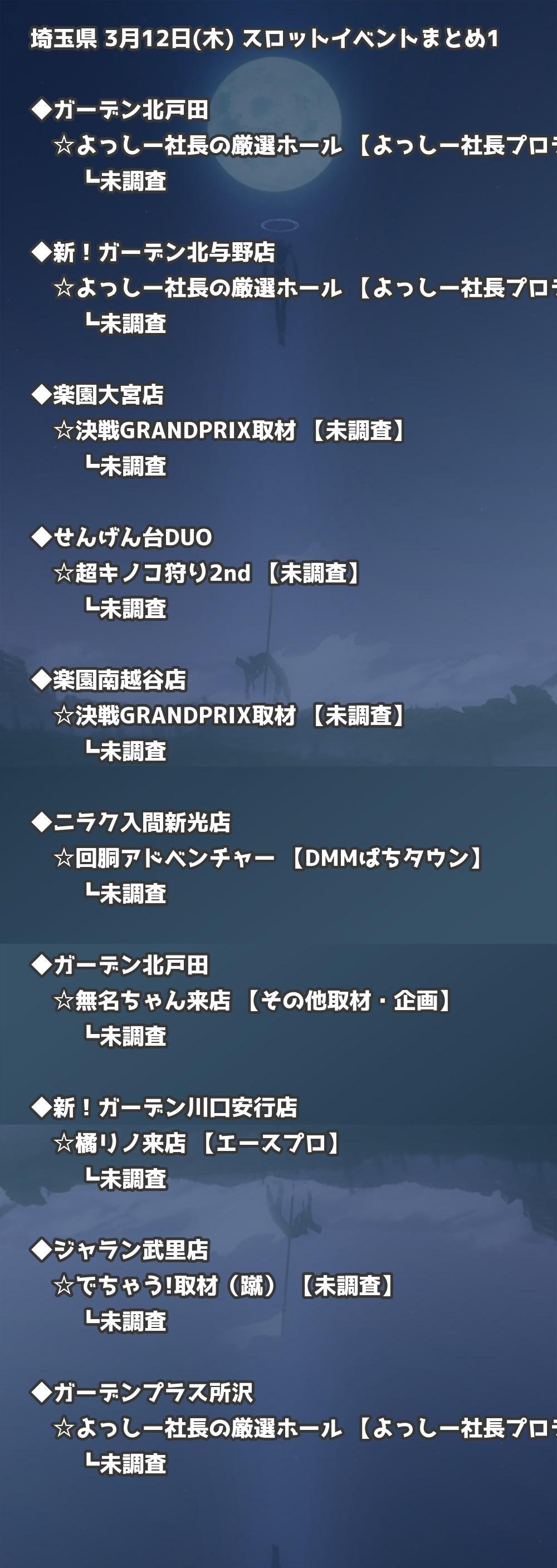 【埼玉県】3月12日(木) パチンコホールイベント取材まとめ記事です。