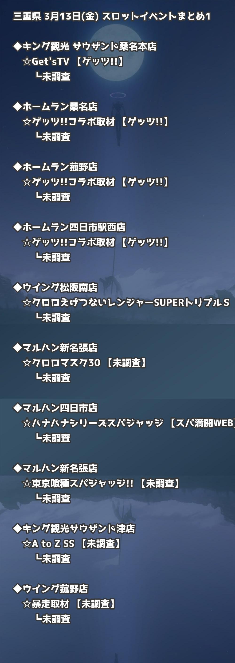 【三重県】3月13日(金) パチンコホールイベント取材まとめ記事です。