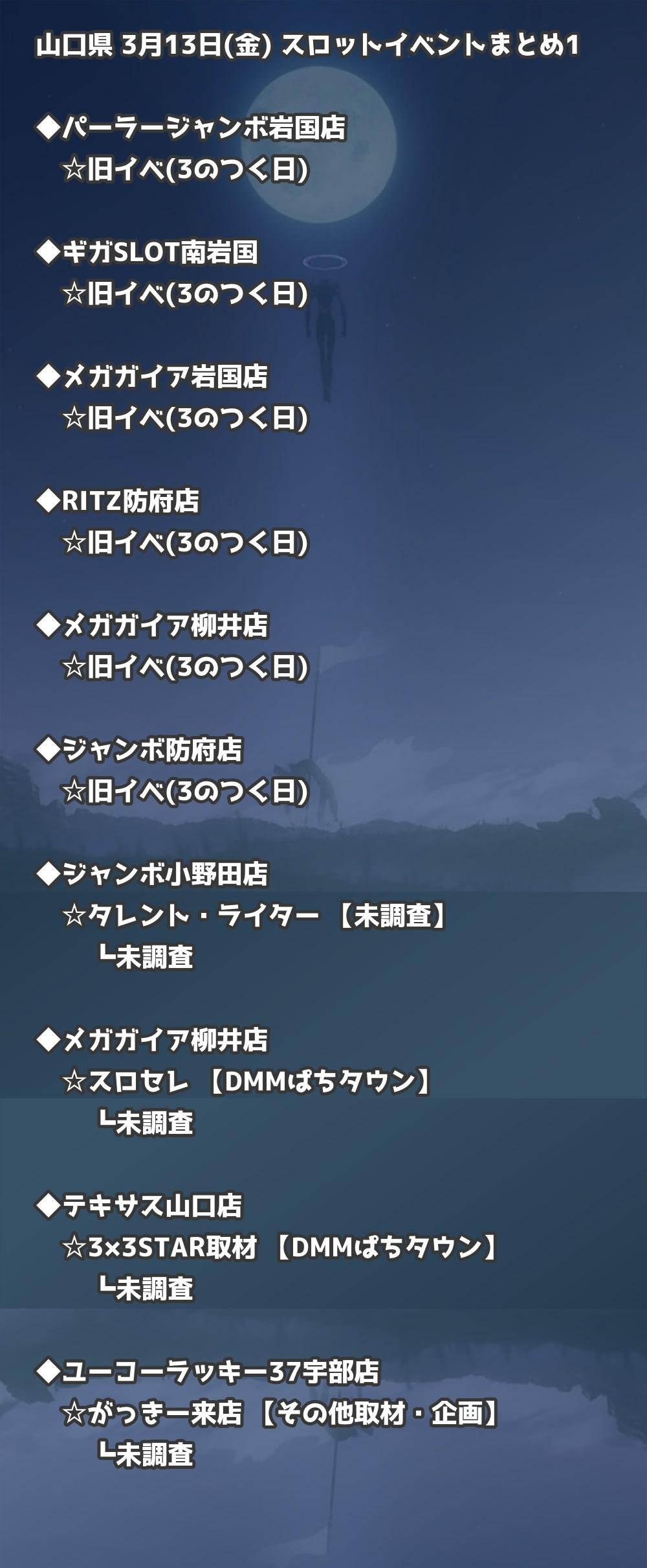 📊 山口県 3月13日(金) 勝てるパチンコ・スロット取材店舗一覧|おすすめ順