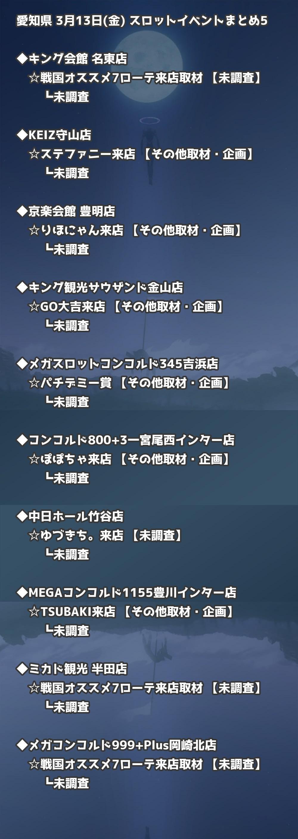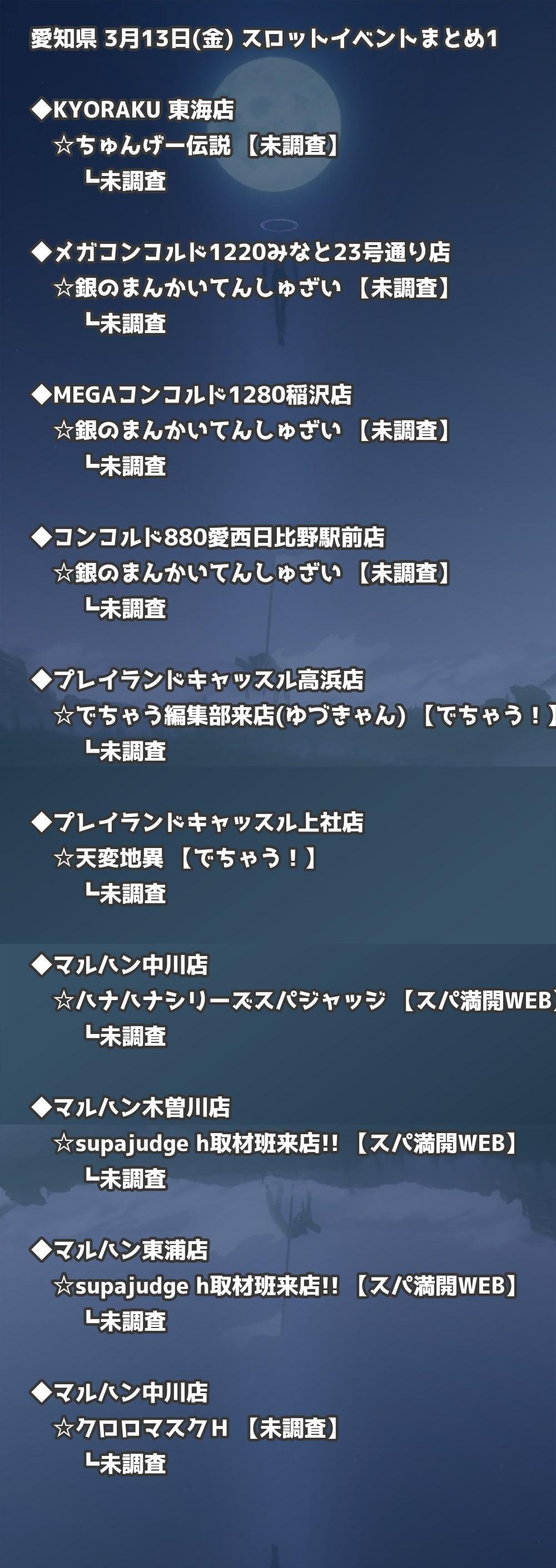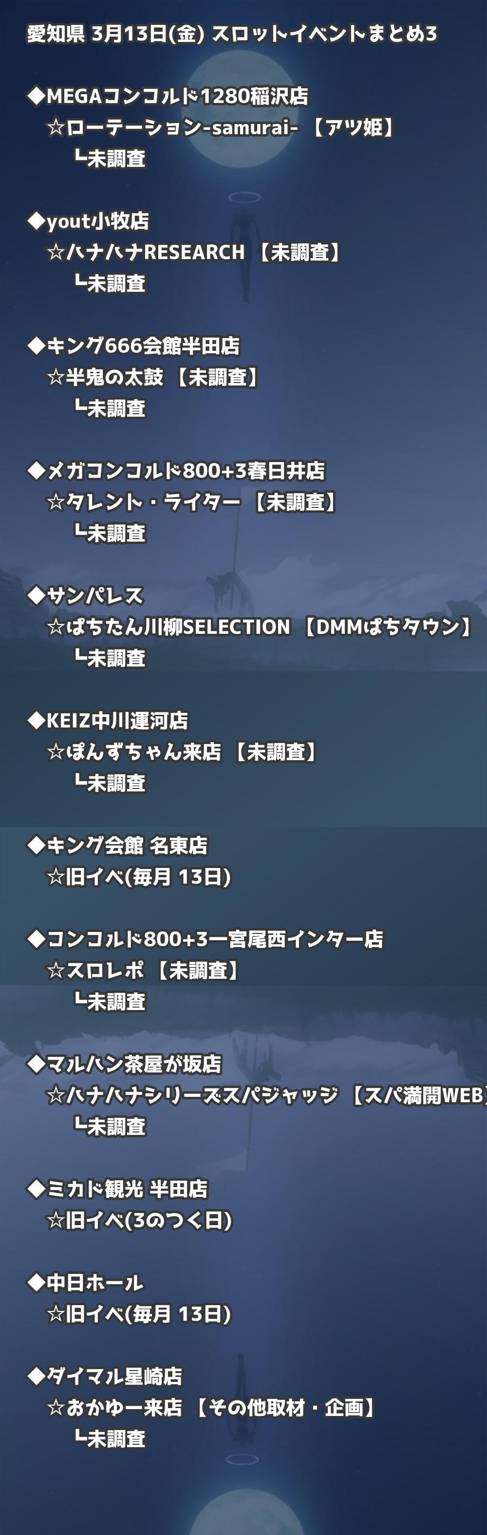 【愛知県】3月13日(金) パチンコホールイベント取材まとめ記事です。